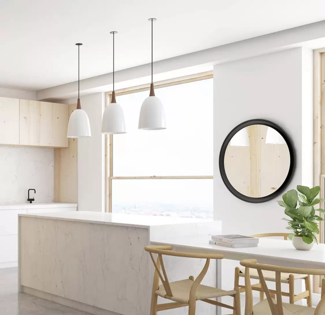 Voss es un colgante único que afina la interacción de la madera y el acero rindiendo homenaje al encanto distintivo del paisaje escandinavo, donde los elementos fríos y calientes