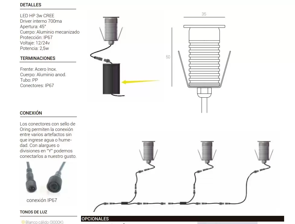 - Opcional extra Alargue IP67