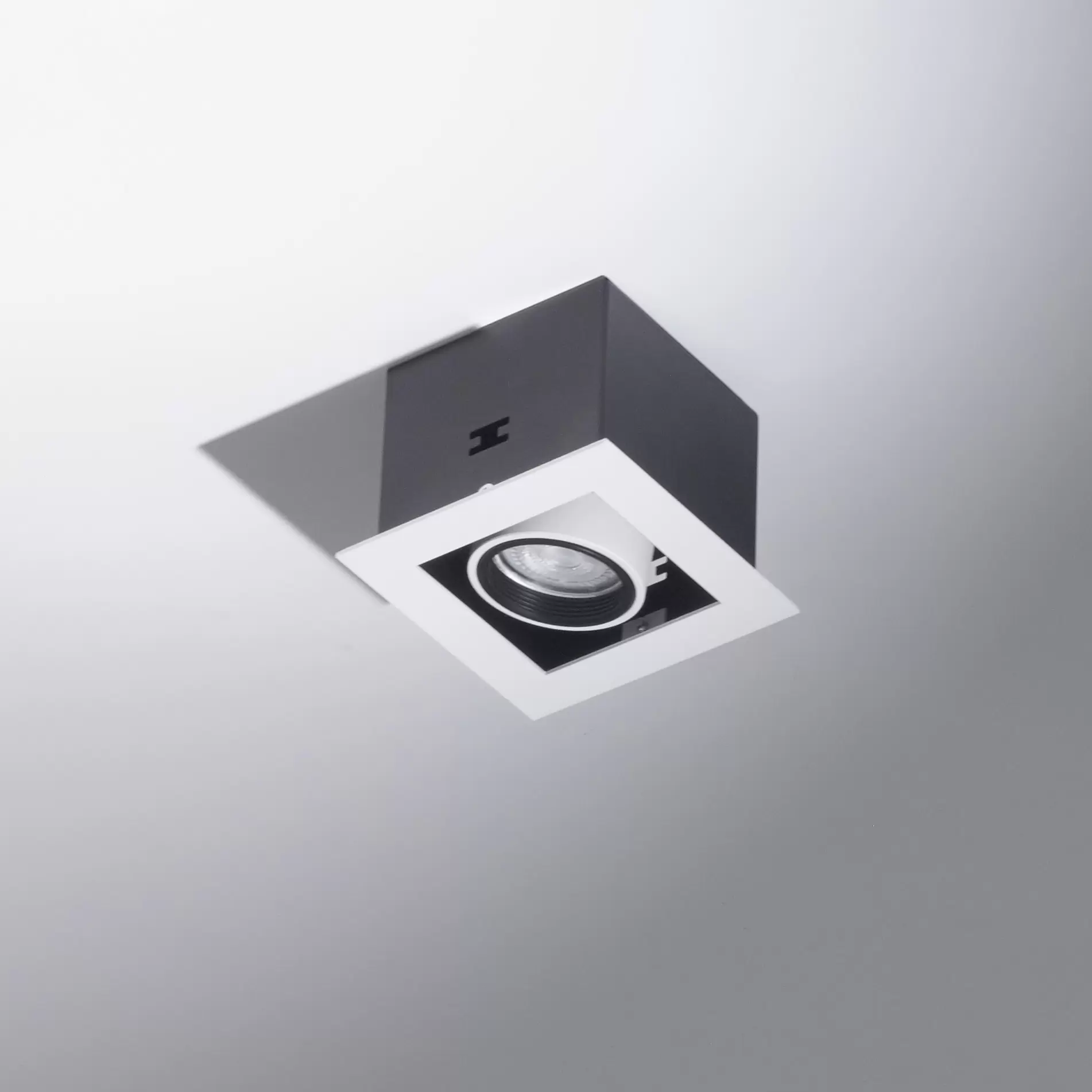 Embutido Karol 1. Luminaria fabricada en metal de estilo moderno, con movimiento cardánico y disponible en dos colores: blanco o negro.