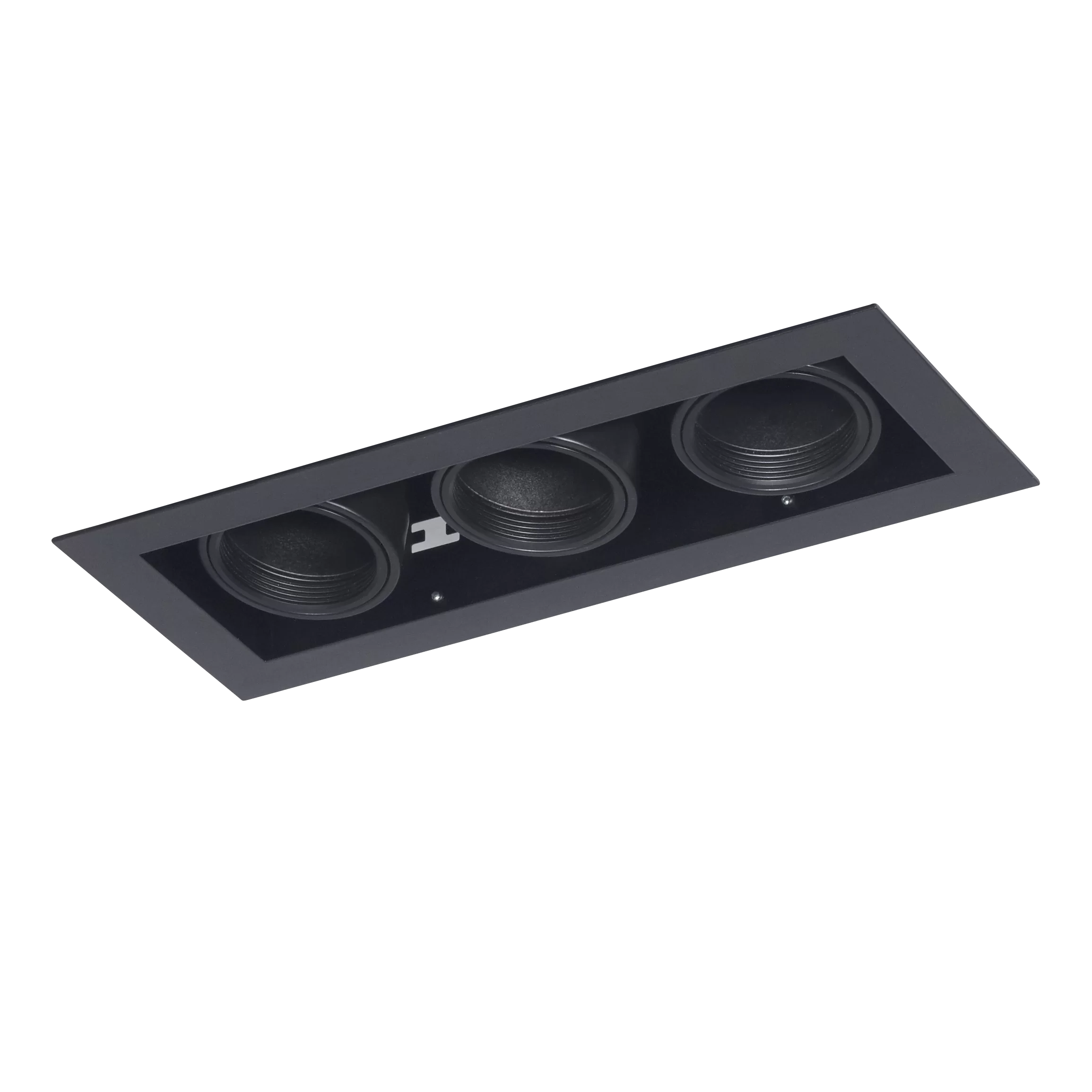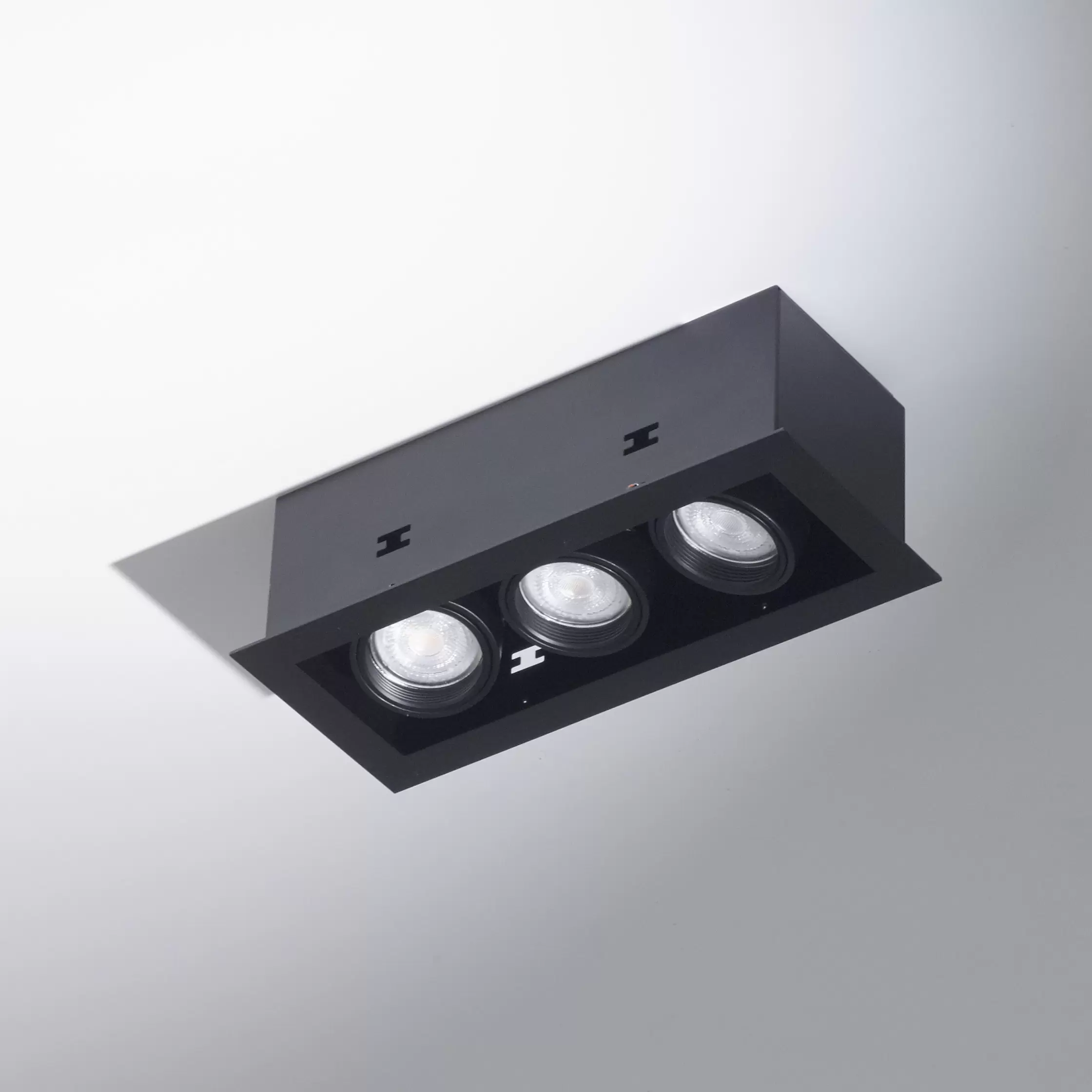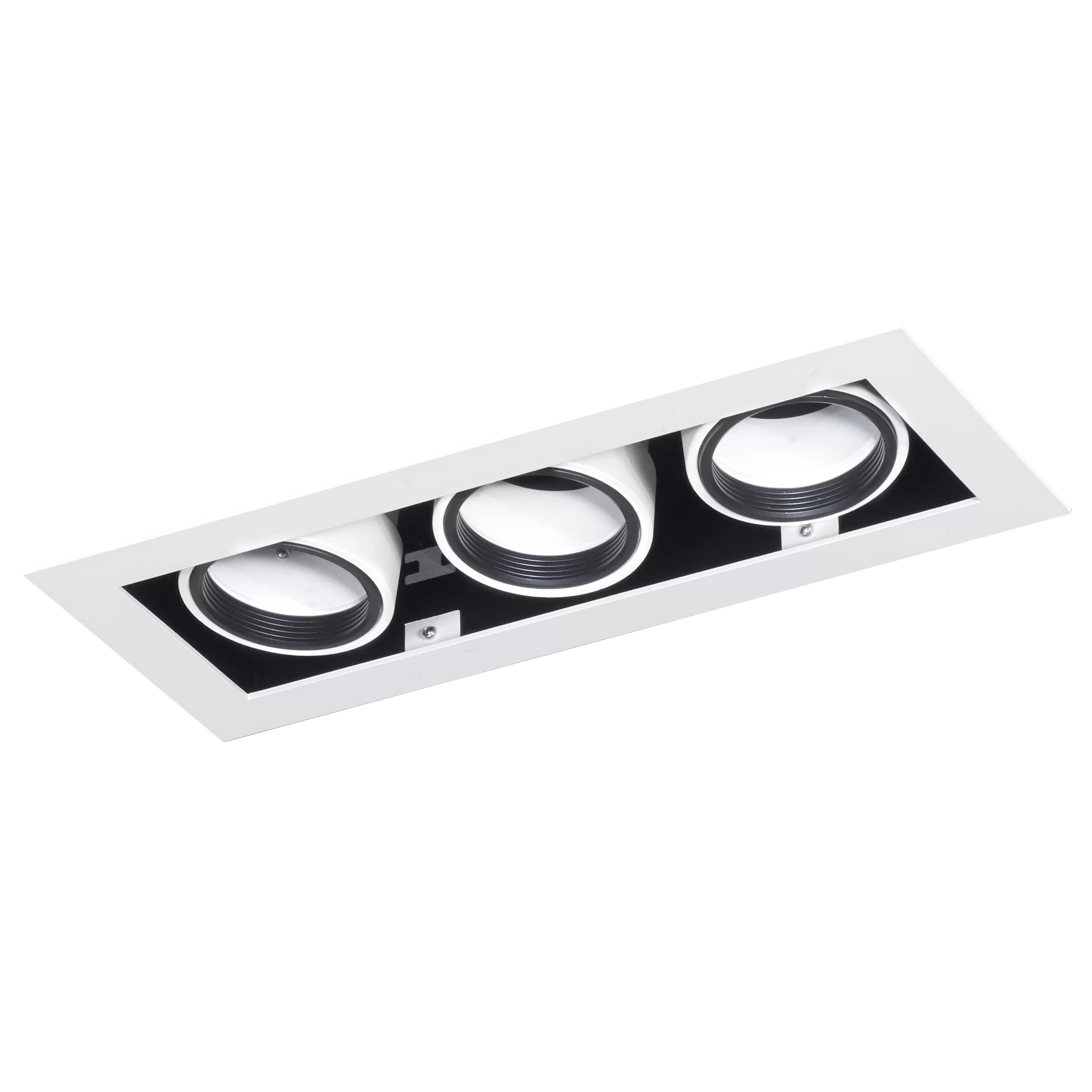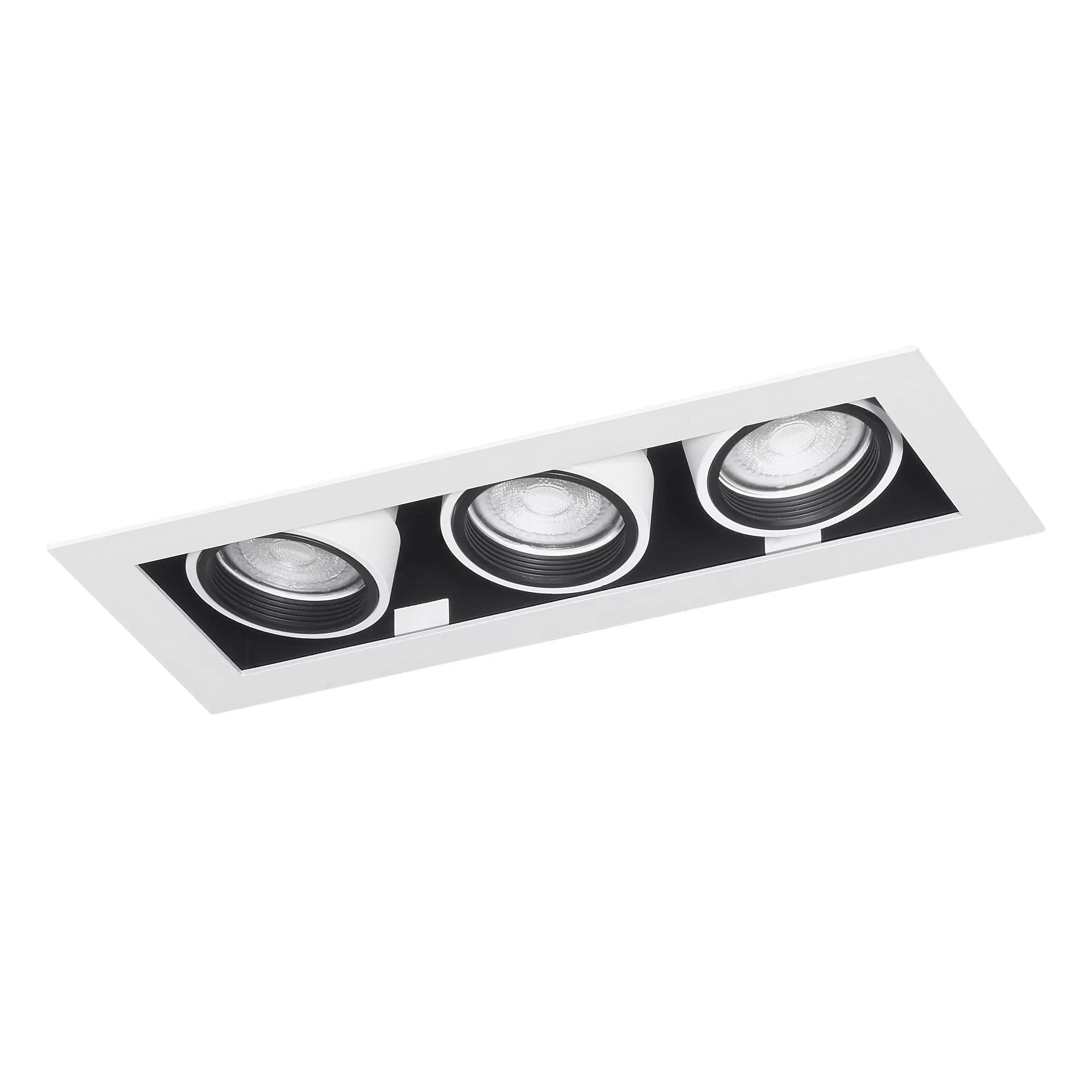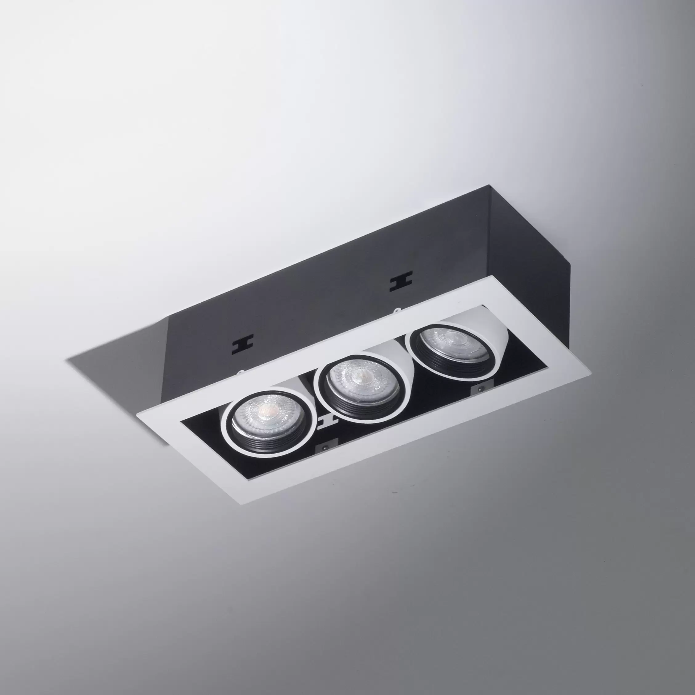 Embutido Karol 3. Luminaria fabricada en metal, de tres luces, estilo moderno, con movimiento cardánico y disponible en dos colores: blanco o negro.