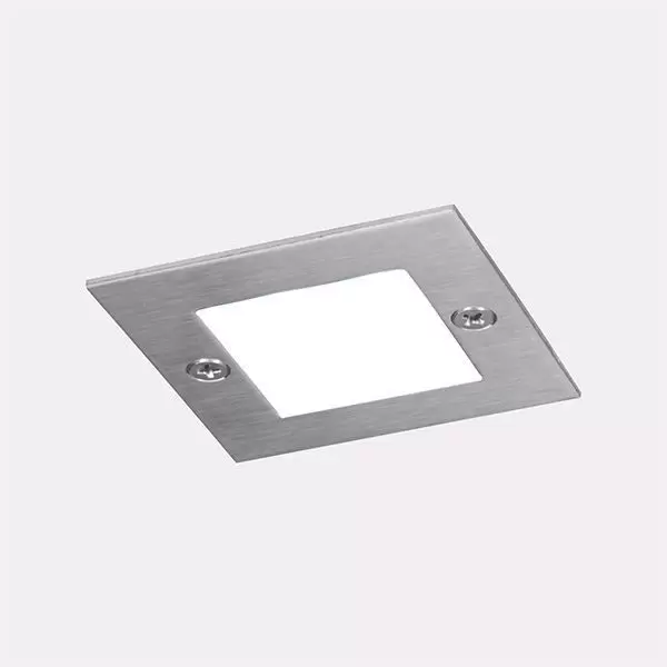 Embutido Koldo. Lámpara de exterior fabricada en metal y vidrio, de estilo moderno, con LED integrado. Disponible únicamente en color acero.