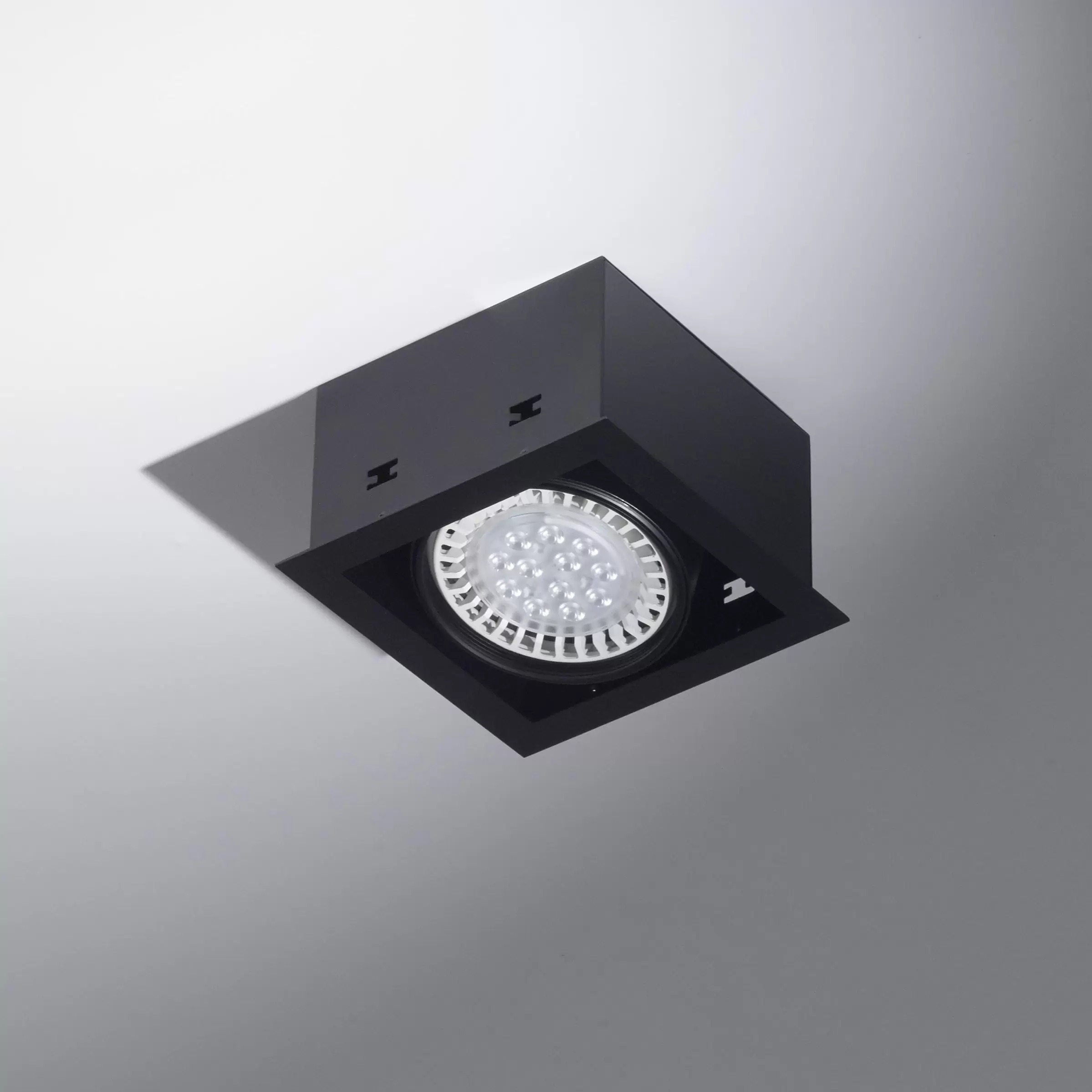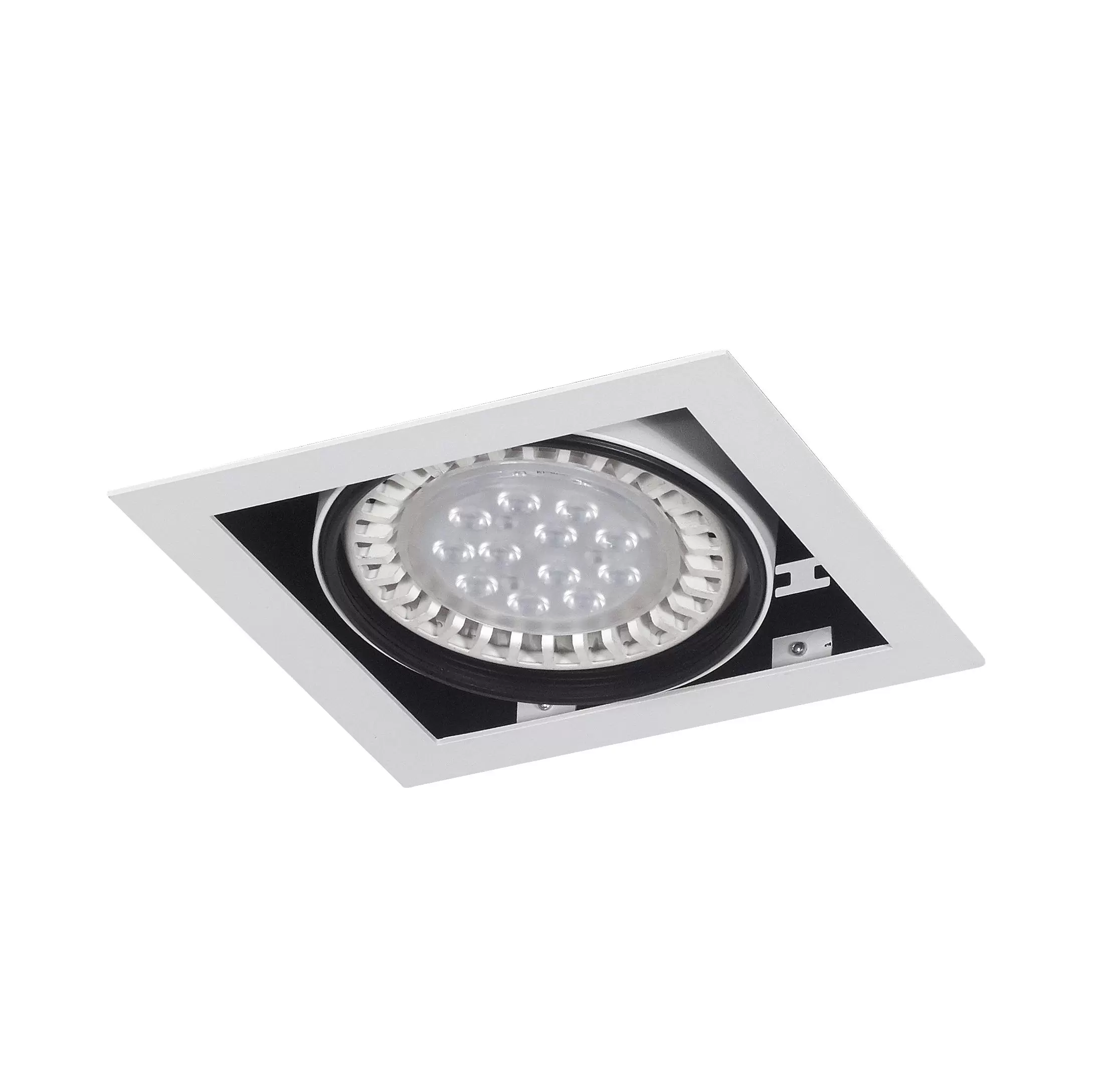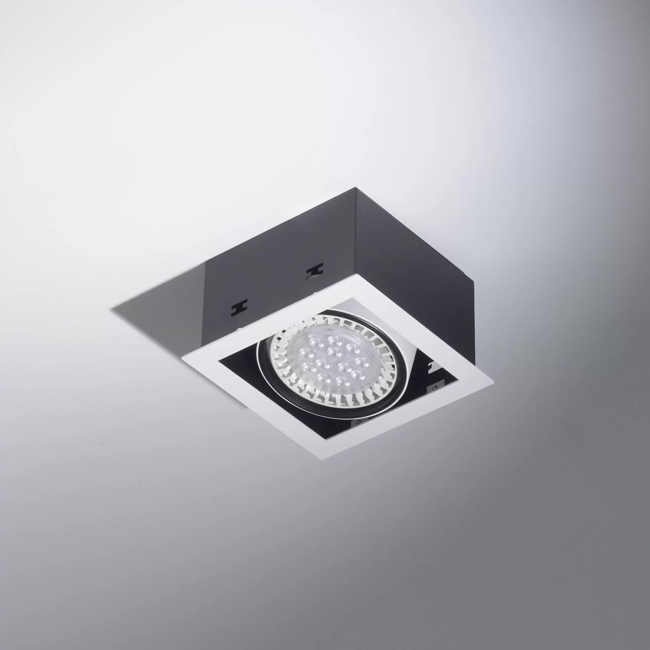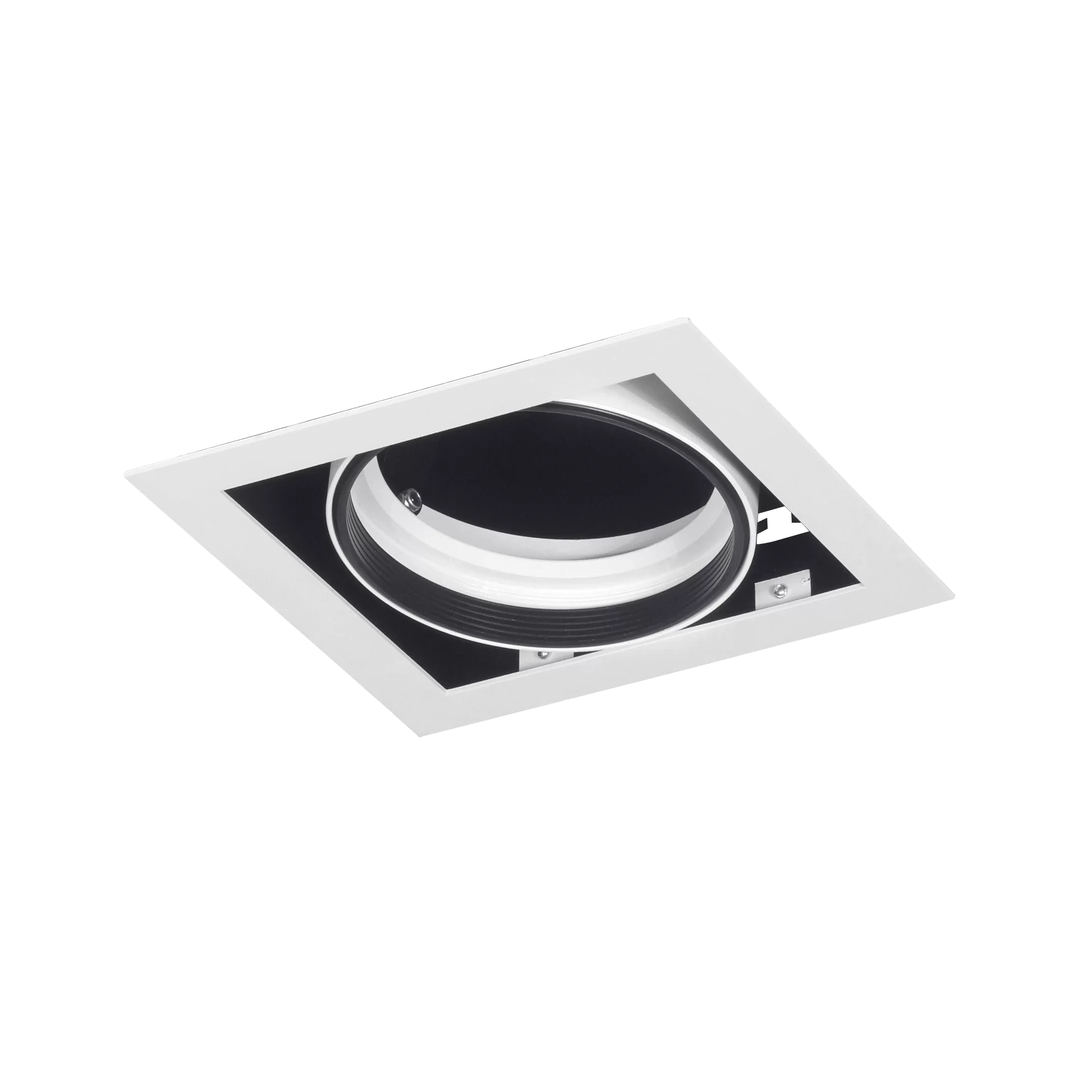 Embutido Mila 1. Luminaria fabricada en metal de estilo moderno, con movimiento cardánico y disponible en dos colores: blanco o negro.