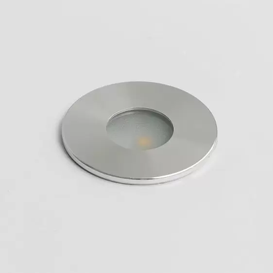 Embutido Point de piso o pared apto exterior. Pequeño, para iluminación de destaque. Instalación sencilla. Distribución de luz simétrica-directa. Cuerpo construido en aluminio, aro frontal de acero inoxidable cepillado.