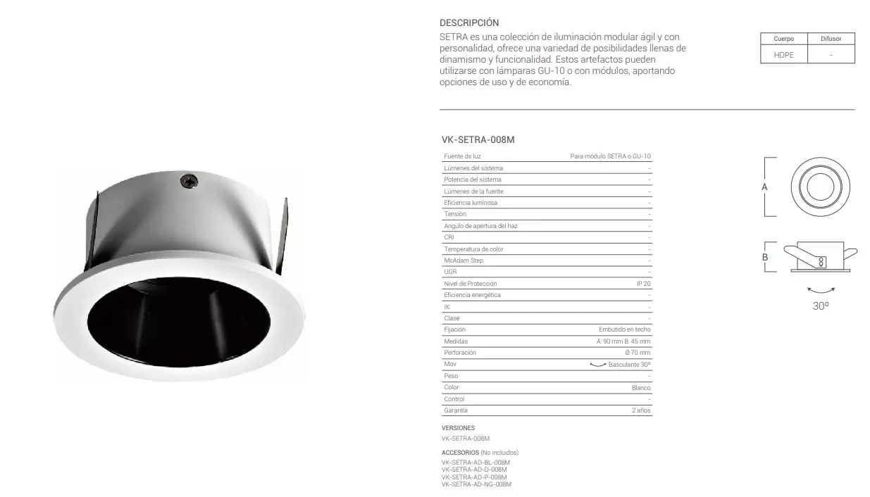 Embutido Setra 008M. Luminaria modular ágil de techo, de estilo moderno y fabricada en aluminio. Disponible sólo en color blanco.