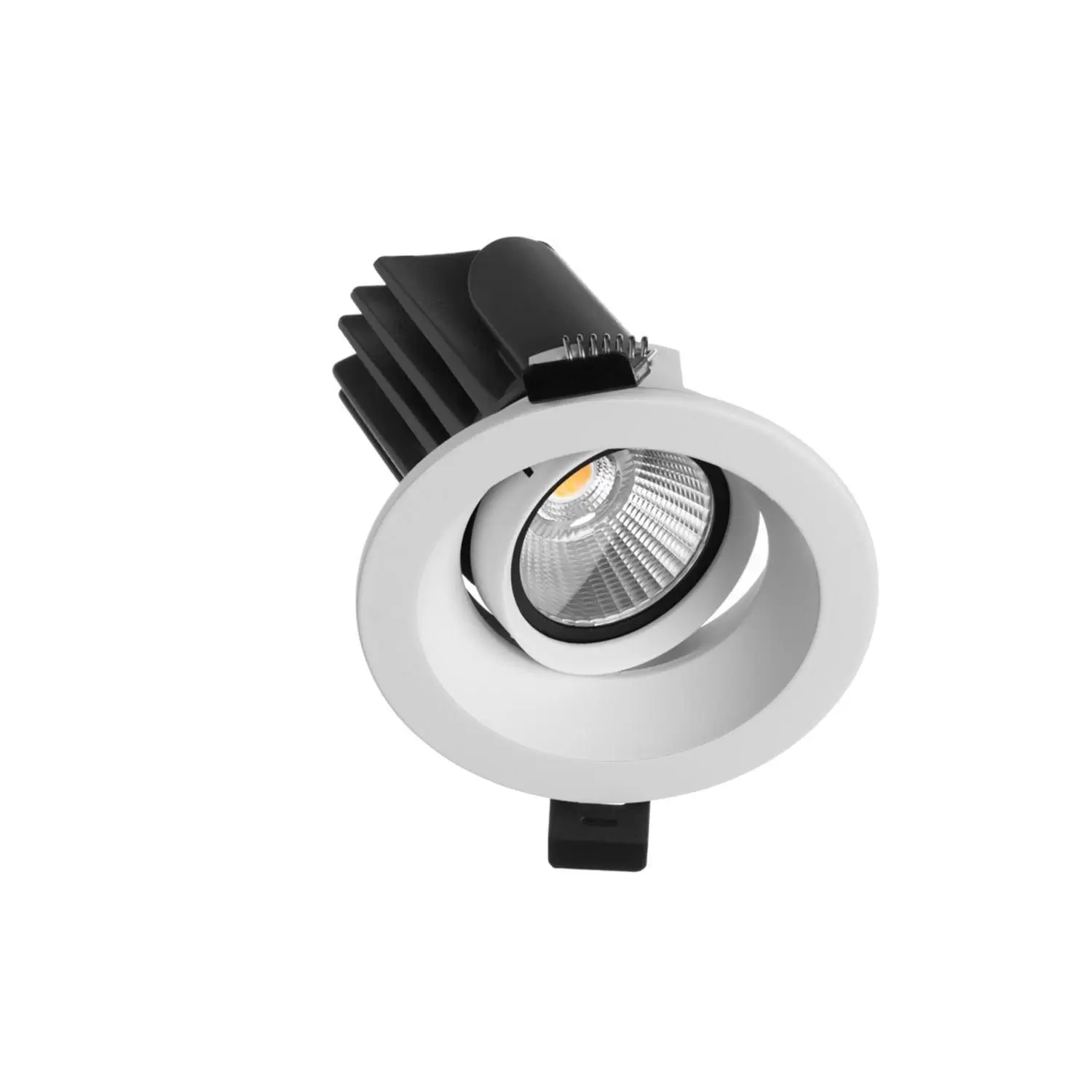 Embutido Setra 07BM apto para alojar módulo SETRA o lámpara GU-10. Movimiento cardánico 30º. Ideal para cielorrasos suspendidos. Alto confort visual. Estructura construida en aluminio.