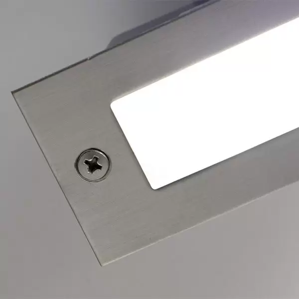 Embutido Unai. Lámpara de exterior fabricada en metal y vidrio, de estilo moderno, con LED integrado. Disponible únicamente en color acero.