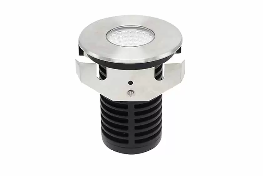 Embutido UP7 de piso de diseño compacto. Apto para intemperie y circulación. Instalación sencilla. Distribución de luz simétrica-directa. Cuerpo construido en aluminio, aro frontal de acero inoxidable. Vidrio templado termo resistente.