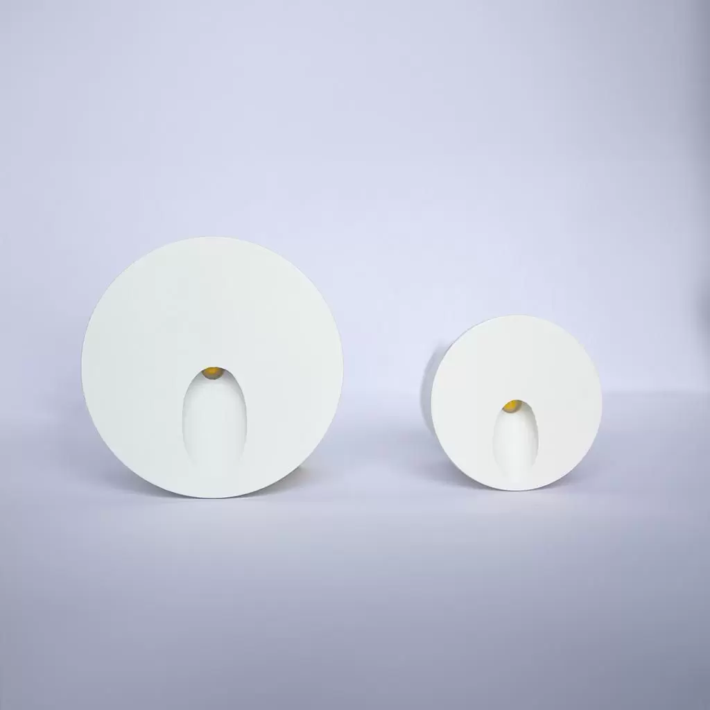 Embutido Zenit R. Luminaria circular de pared con luz LED, de estilo moderno fabricado en aluminio con difusor de vidrio. Viene en blanco o negro.