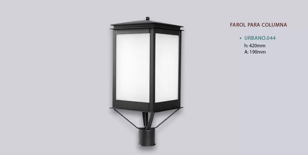 La Farola Urbano para columnas es una lámpara de una luz, estilo moderno, disponible en color negro. Las columnas pueden adquirirse por separado en la web.