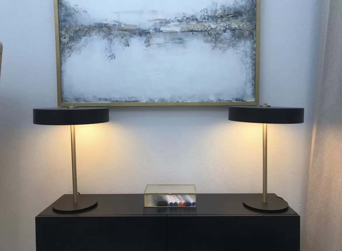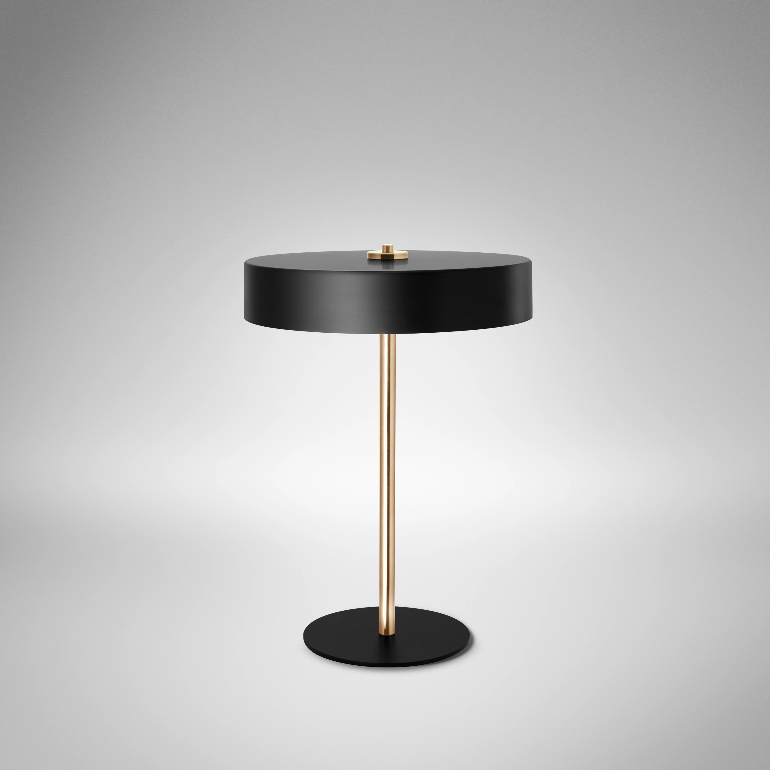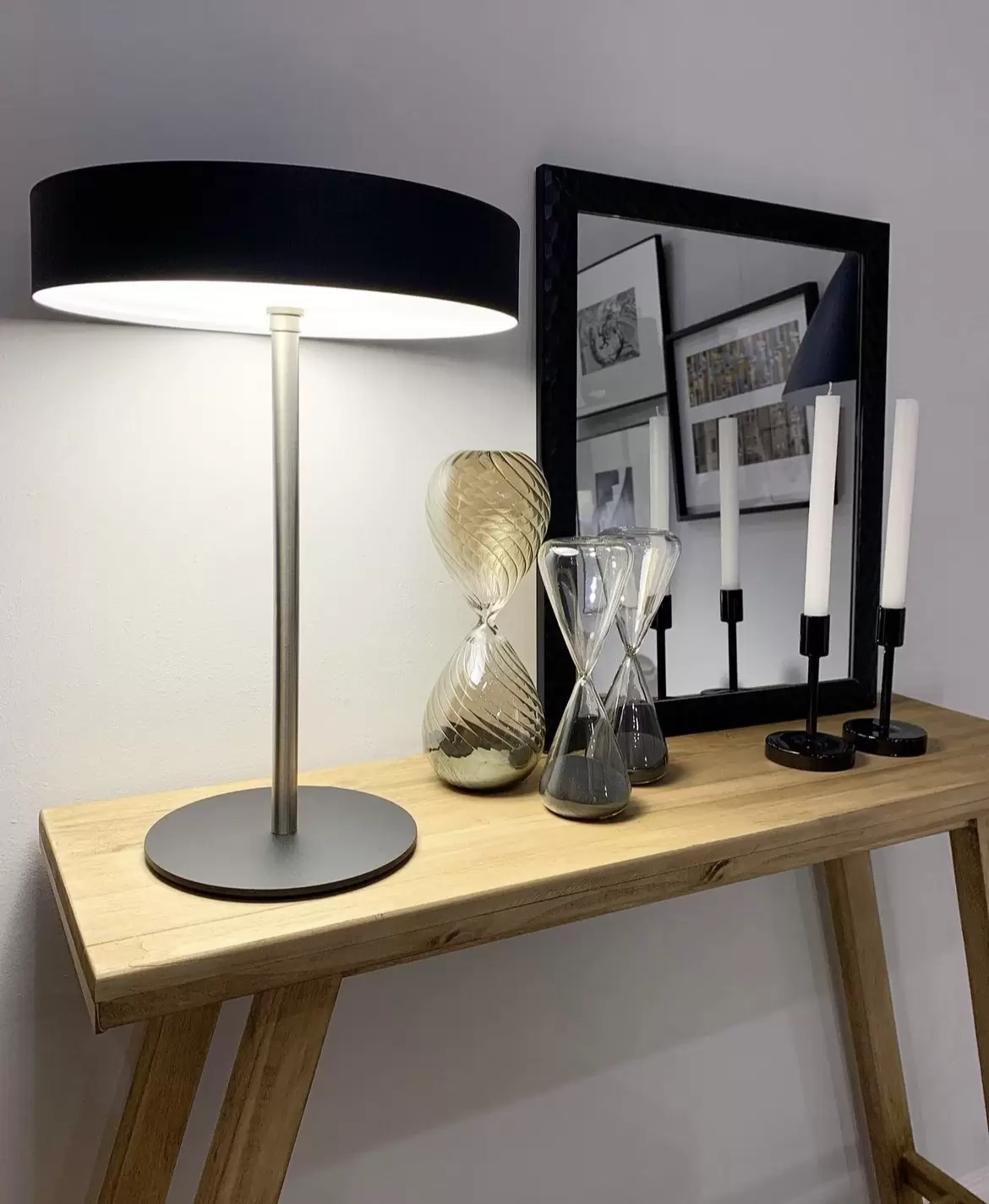 Lámpara de mesa Acopla alta esta realizada en chapa de hierro pintada y galvanizada con difusor acrílico disponible en dos colores.