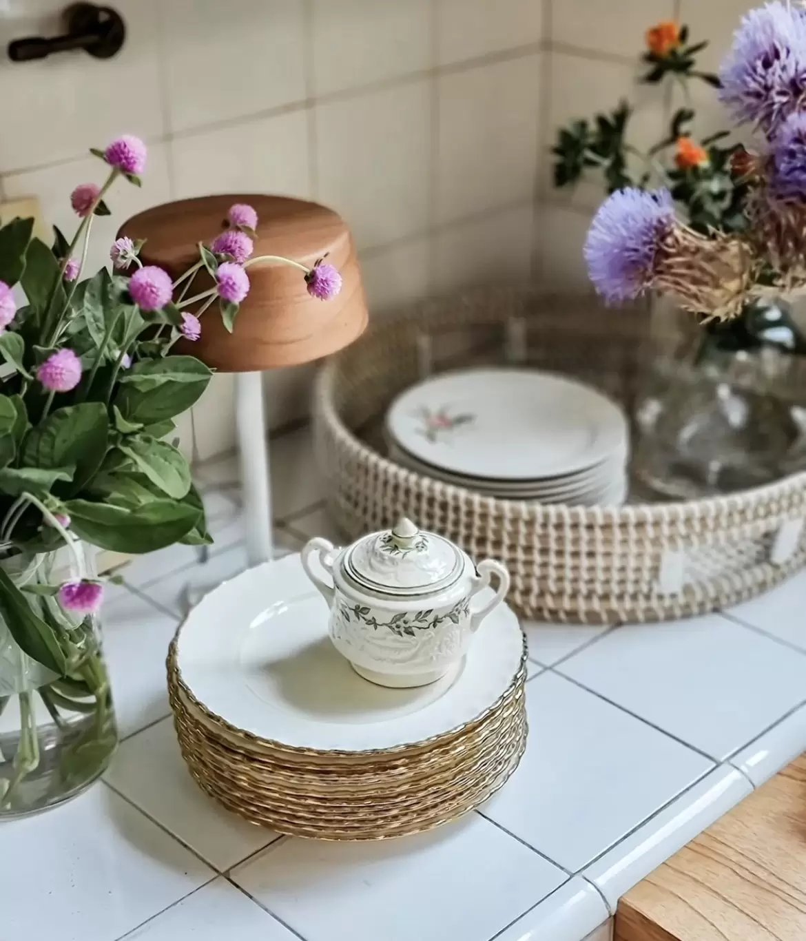 - Material: Madera de cedro torneada a mano con soporte y base de hierro pintado en blanco microtexturado