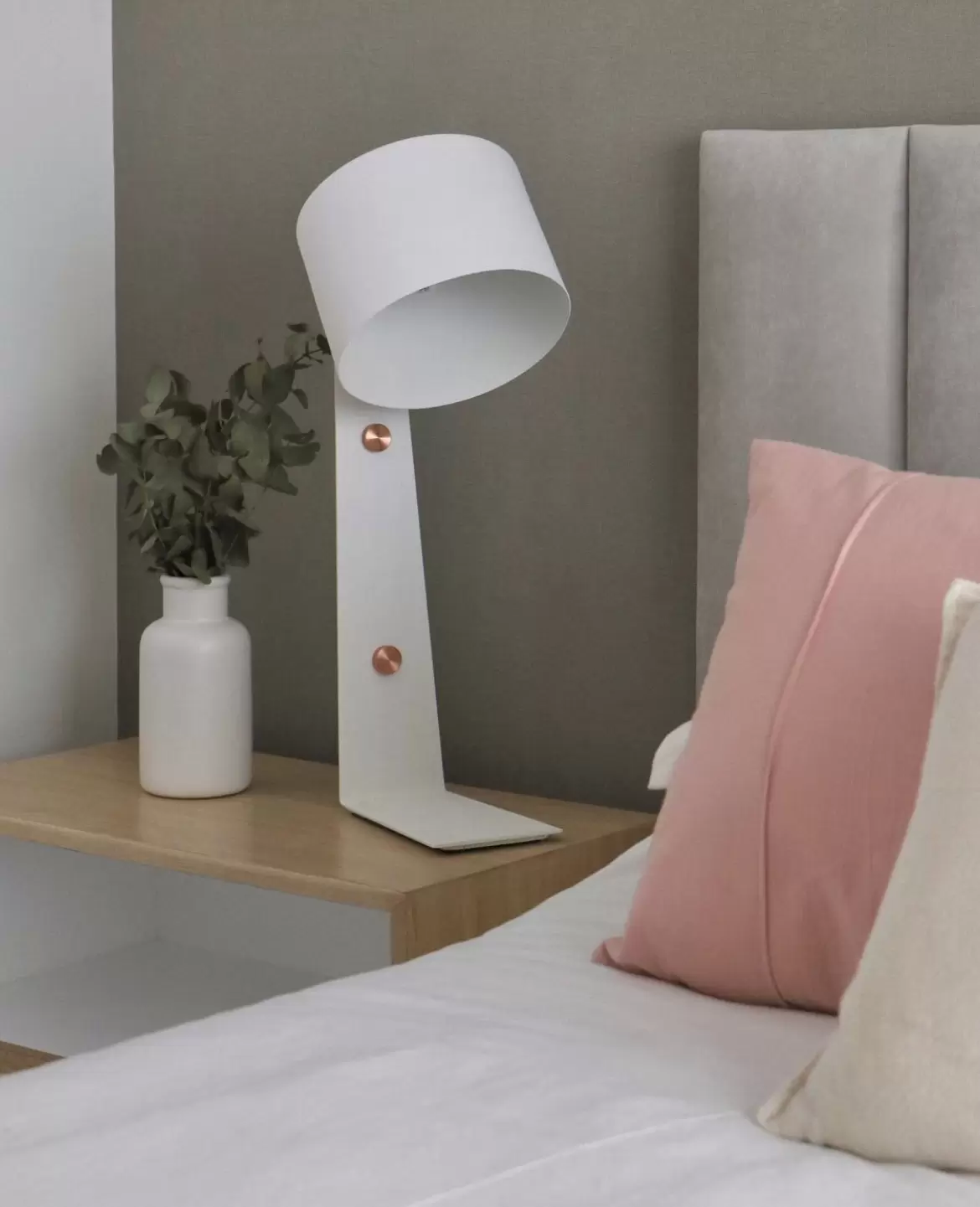 Lampara de mesa Bari es una luminaria de 58cm de altura fácilmente adaptable a tus espacios gracias a su amplia gama de colores.