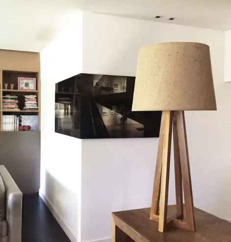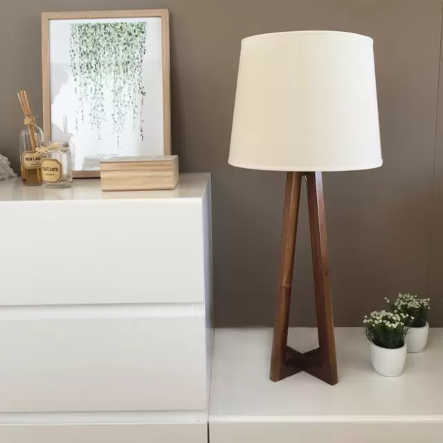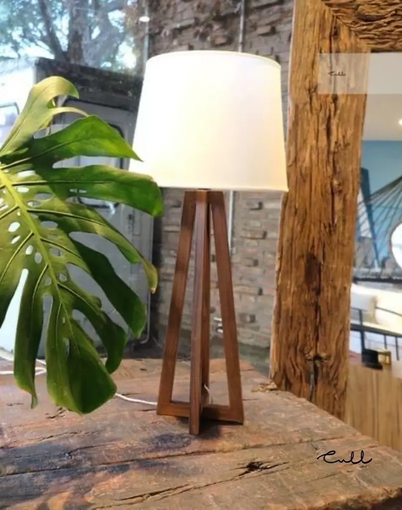 La lámpara de mesa Cruz es un velador fabricado en madera y lienzo o arpillera, de estilo minimal, adaptable a todo tipo de ambiente.