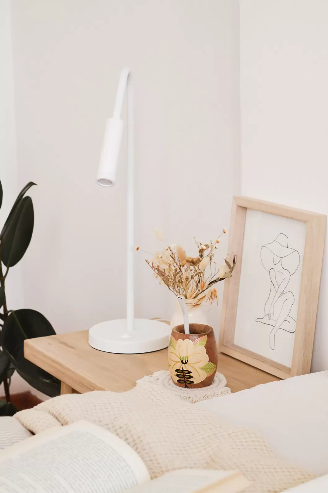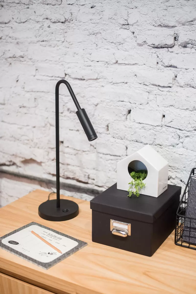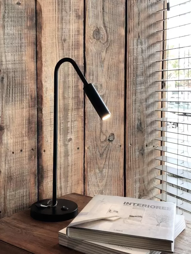 Lampara de mesa Denver es una luminaria de 50cm de alto disponible en color blanco o negro con LED integrado color cálido.