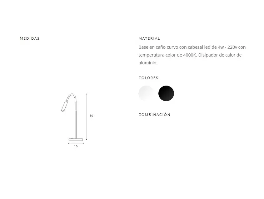 - Material: Pedestal en caño curvo y plato de aluminio torneado con difusor acrílico.