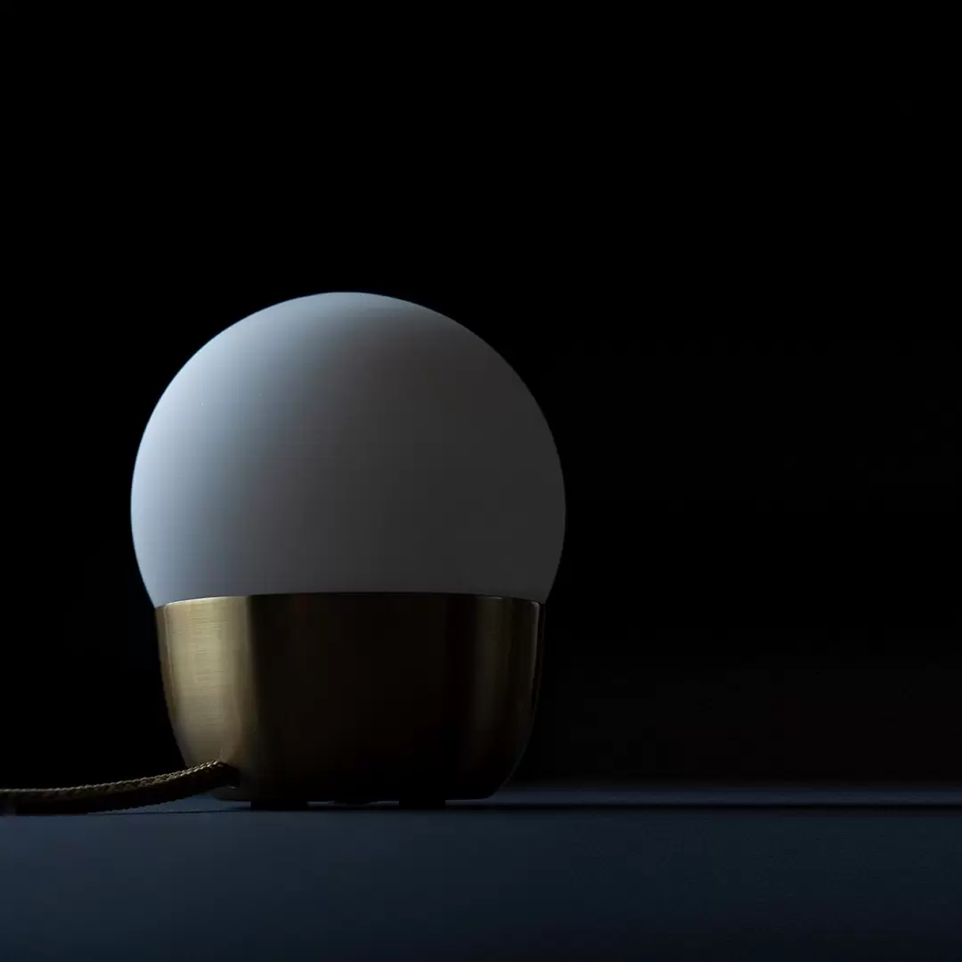 Lámpara de mesa Dimi Nuto. Luminaria de diseño de estilo moderno con tulipa de vidrio opal satinada y base fabricada en metal.