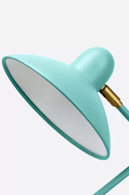 Julia es una lámpara de escritorio simpática, divertida pero también funcional. Con un diseño del estilo americano retro, esta pieza nos lleva a un lugar nostálgico, hogareño y familiar. Su pantalla cuenta con una articulación que le permite dirigir la luz casi a cualquier lugar. Ideal como lámpara de lectura, para poner sobre un escritorio o para decorar alguna mesa auxiliar. Los detalles en bronce hacen resaltar el color de la estructura y la pantalla.