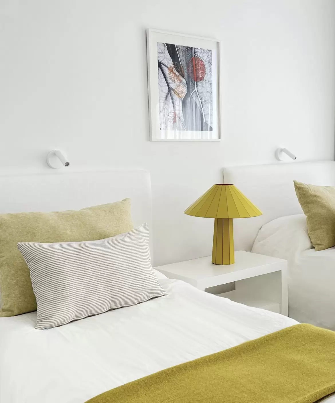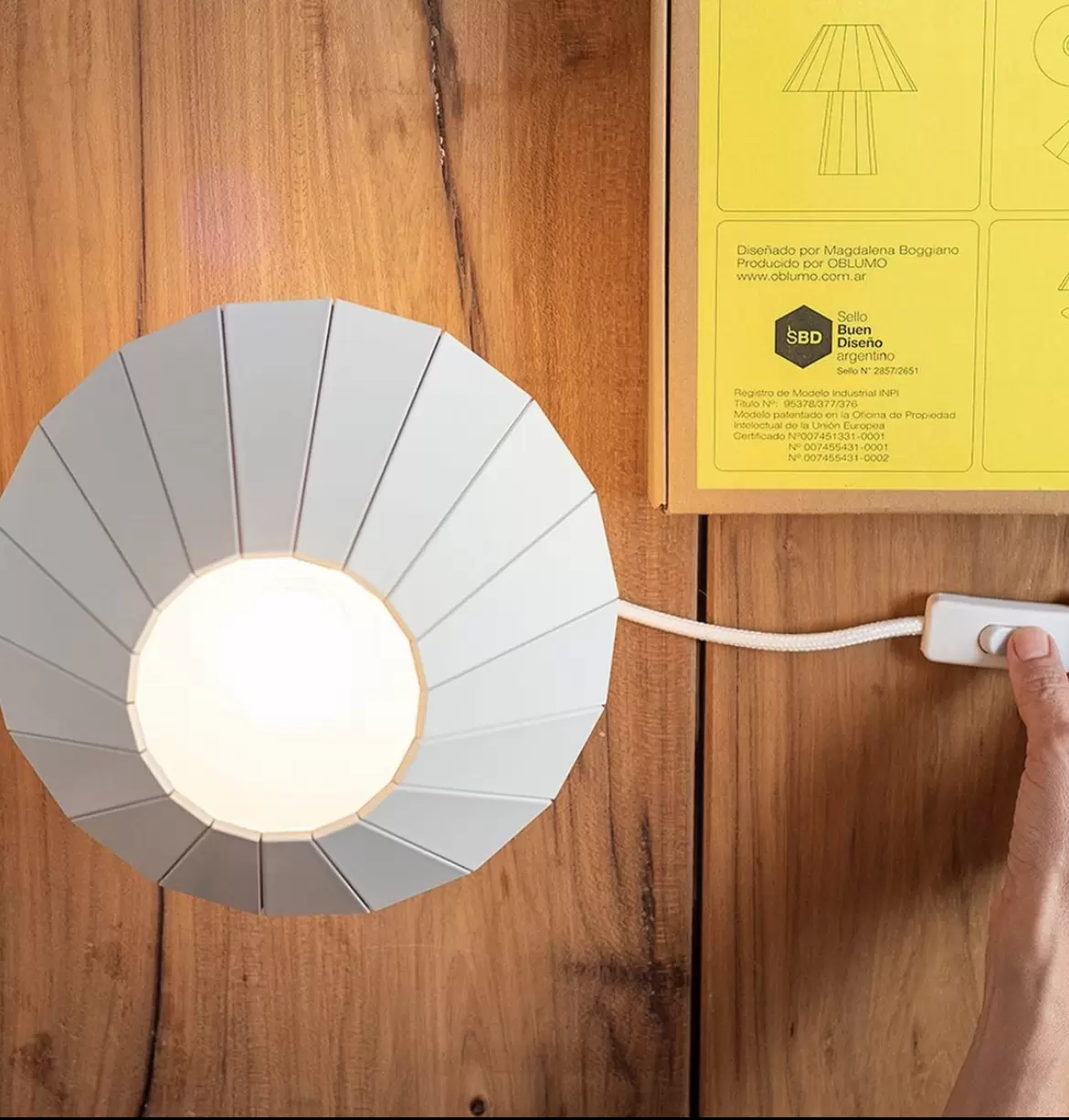 La lámpara de mesa Maja es una luminaria de diseño realizada en placas laqueadas. La misma se encuentra disponible en blanco, negro o amarillo y dos tamaños: small y large.