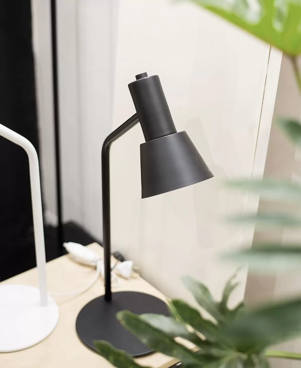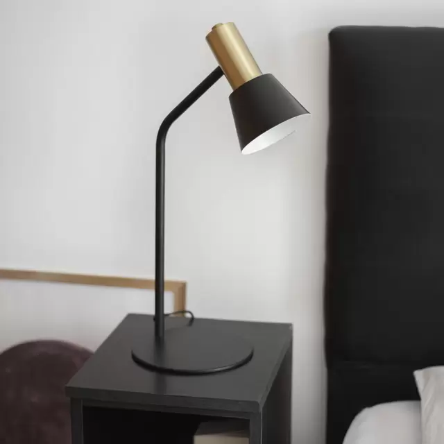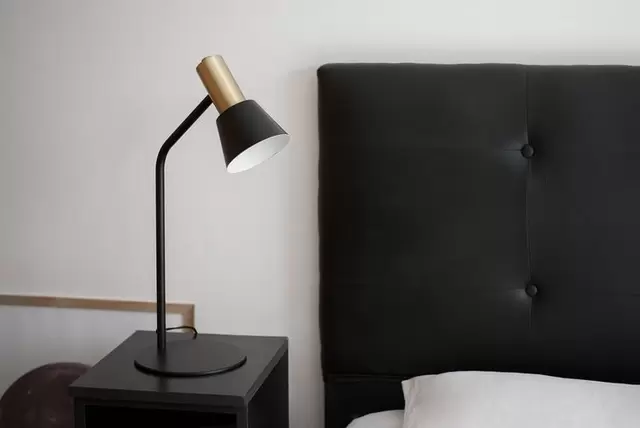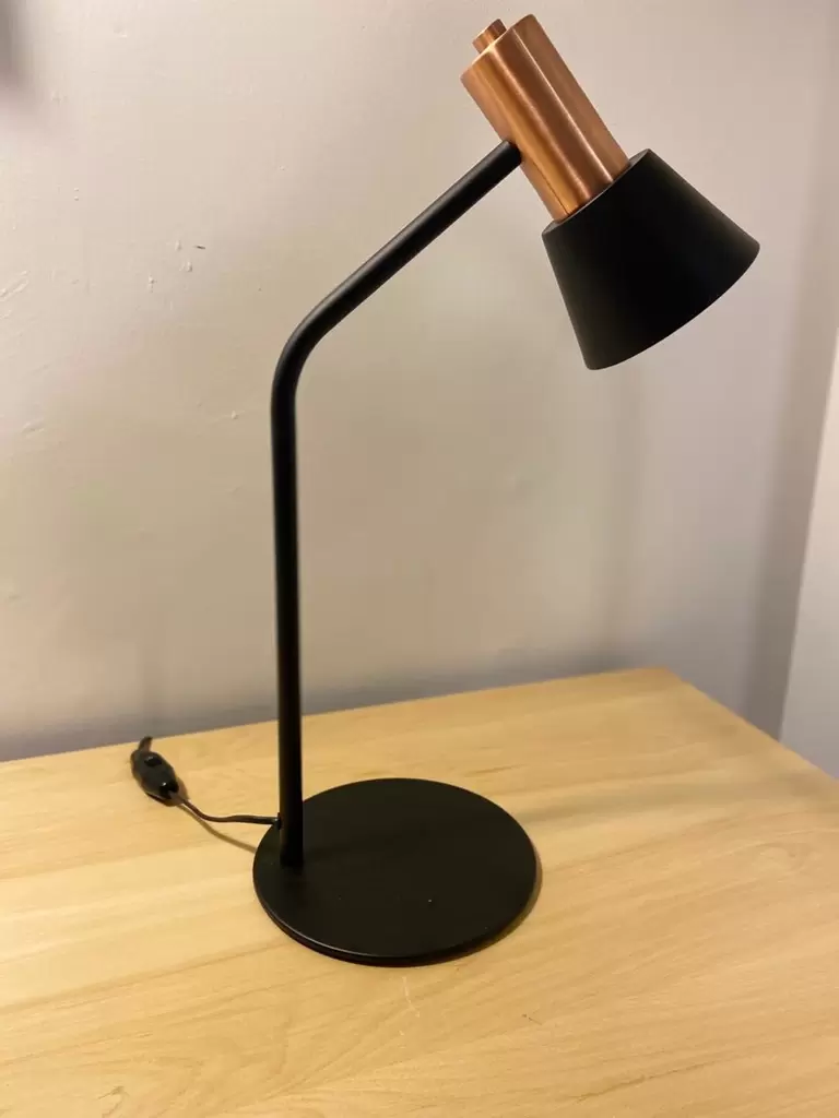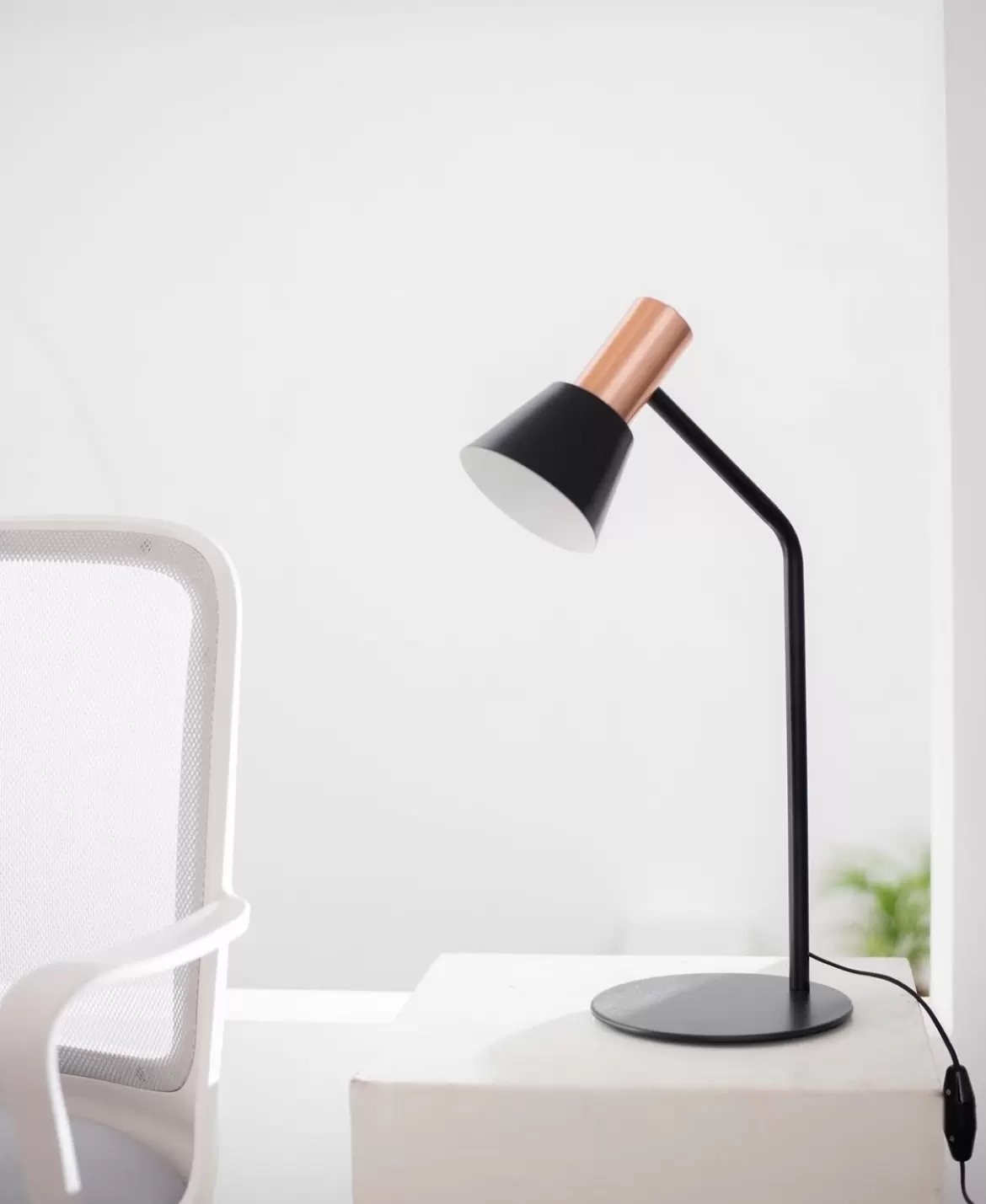 Lámpara de mesa Milano es una luminaria de 55cm de alto disponible en color blanco o negro integro o con detalles en cobre, plátil o bronce.