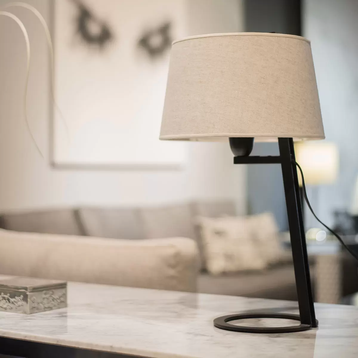 - Colores: Estructura negro o blanco con pantalla lino, blanca o negro.