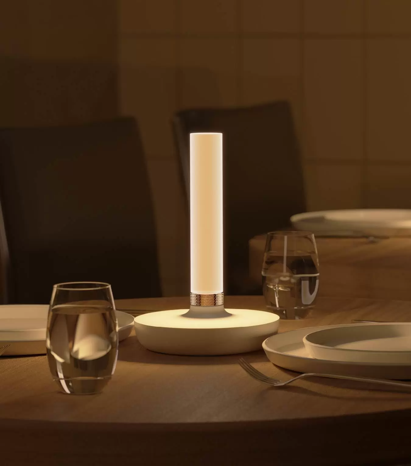Lampara de mesa NIZA, es una luminaria inalámbrica de estilo moderno. Apta para ambientes interiores o exteriores gracias a su material de aluminio fundido.