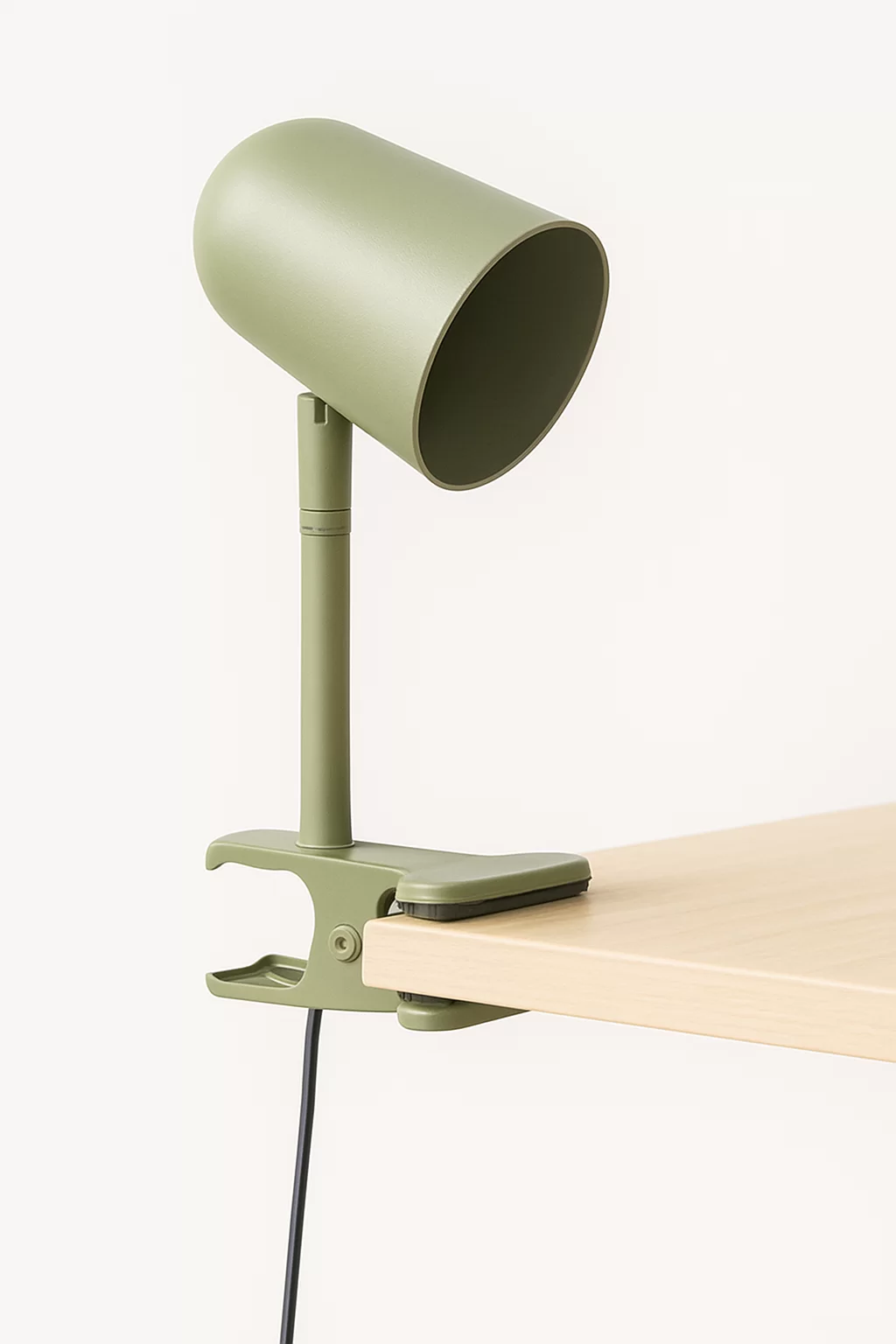 Lampara de mesa Olivia clip es una luminaria adaptable a distintos tipos de espacios ya que se ajusta a superficies horizontales. Viene en diferentes colores con la posibilidad de adaptarse a distintos tipos de ambientes.