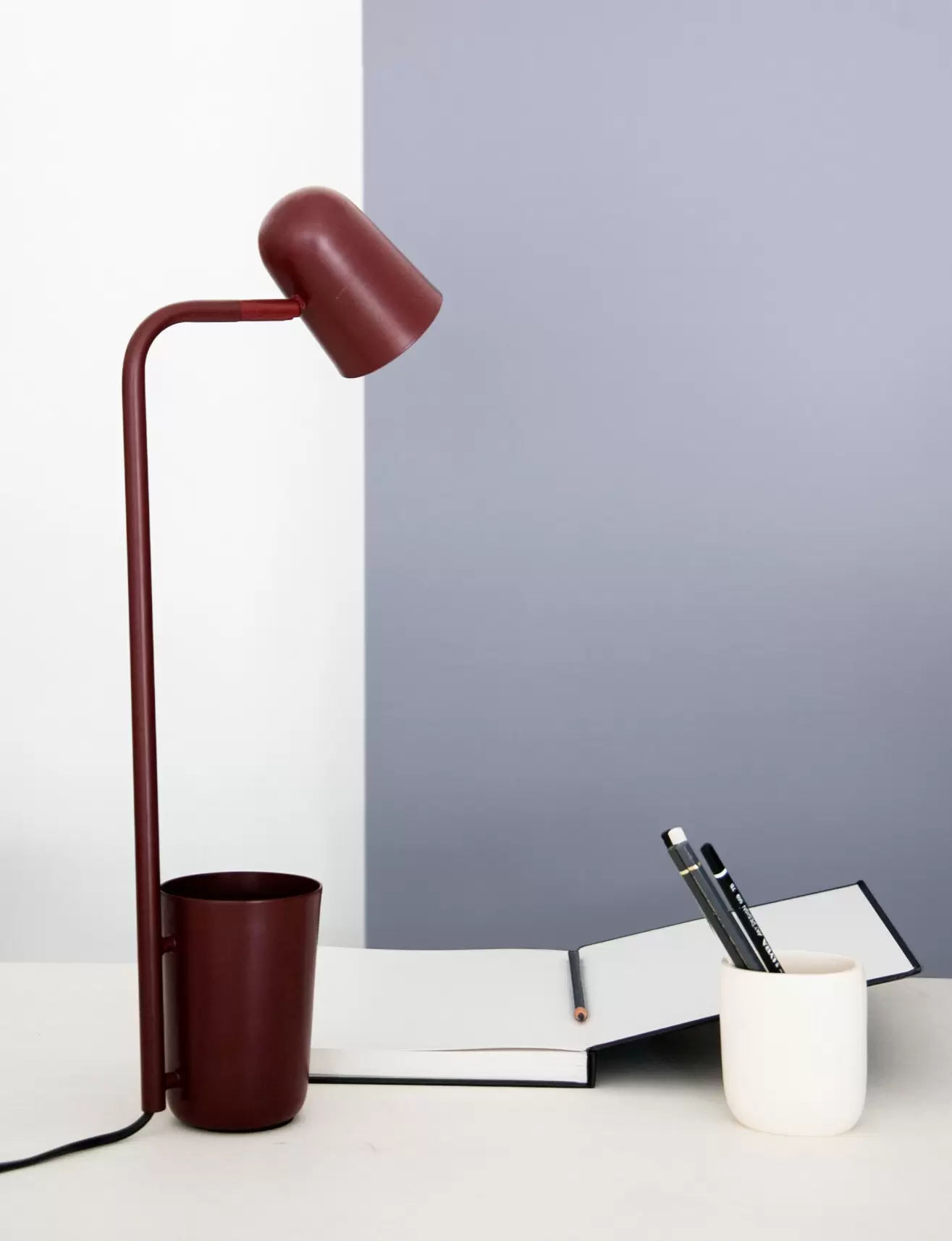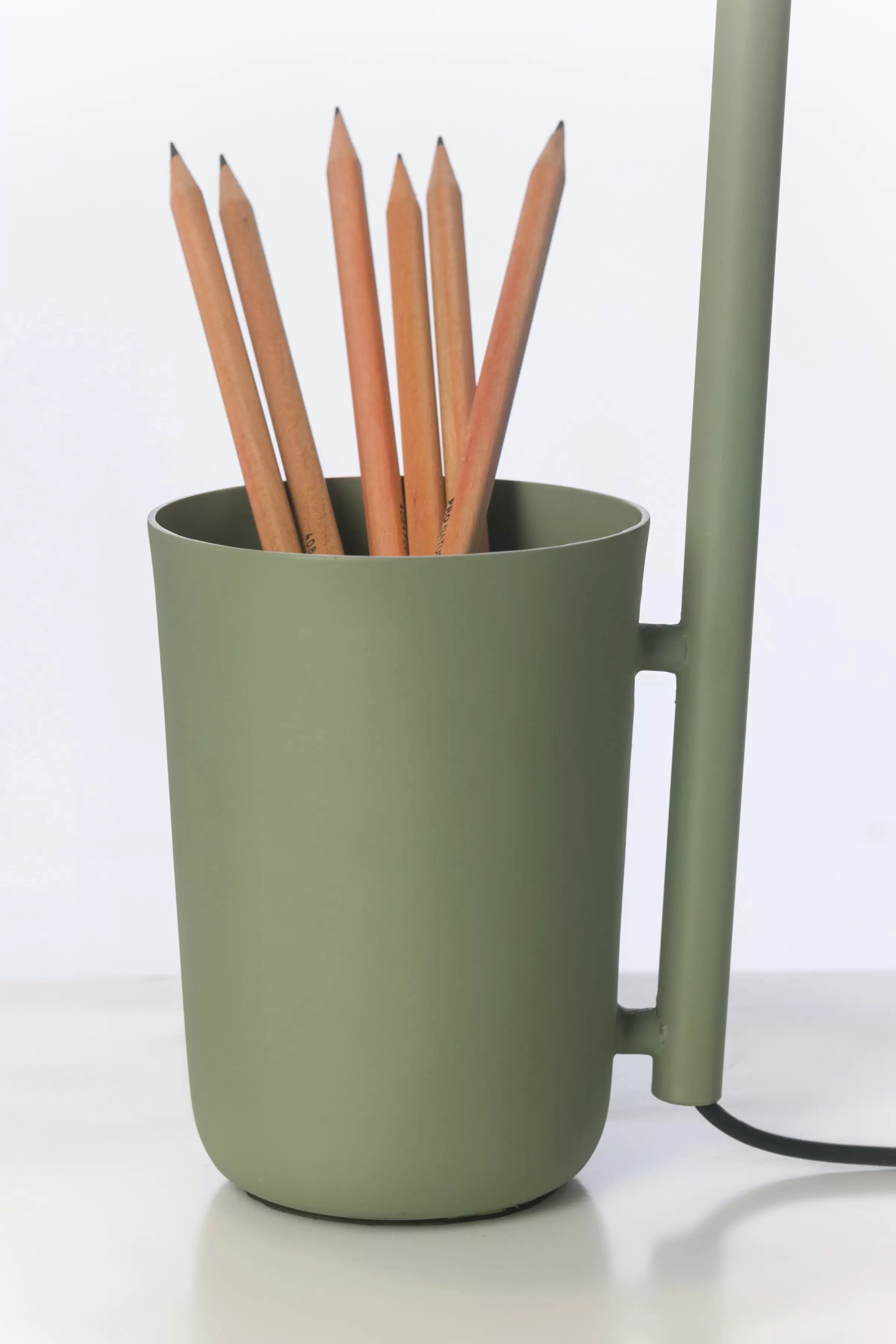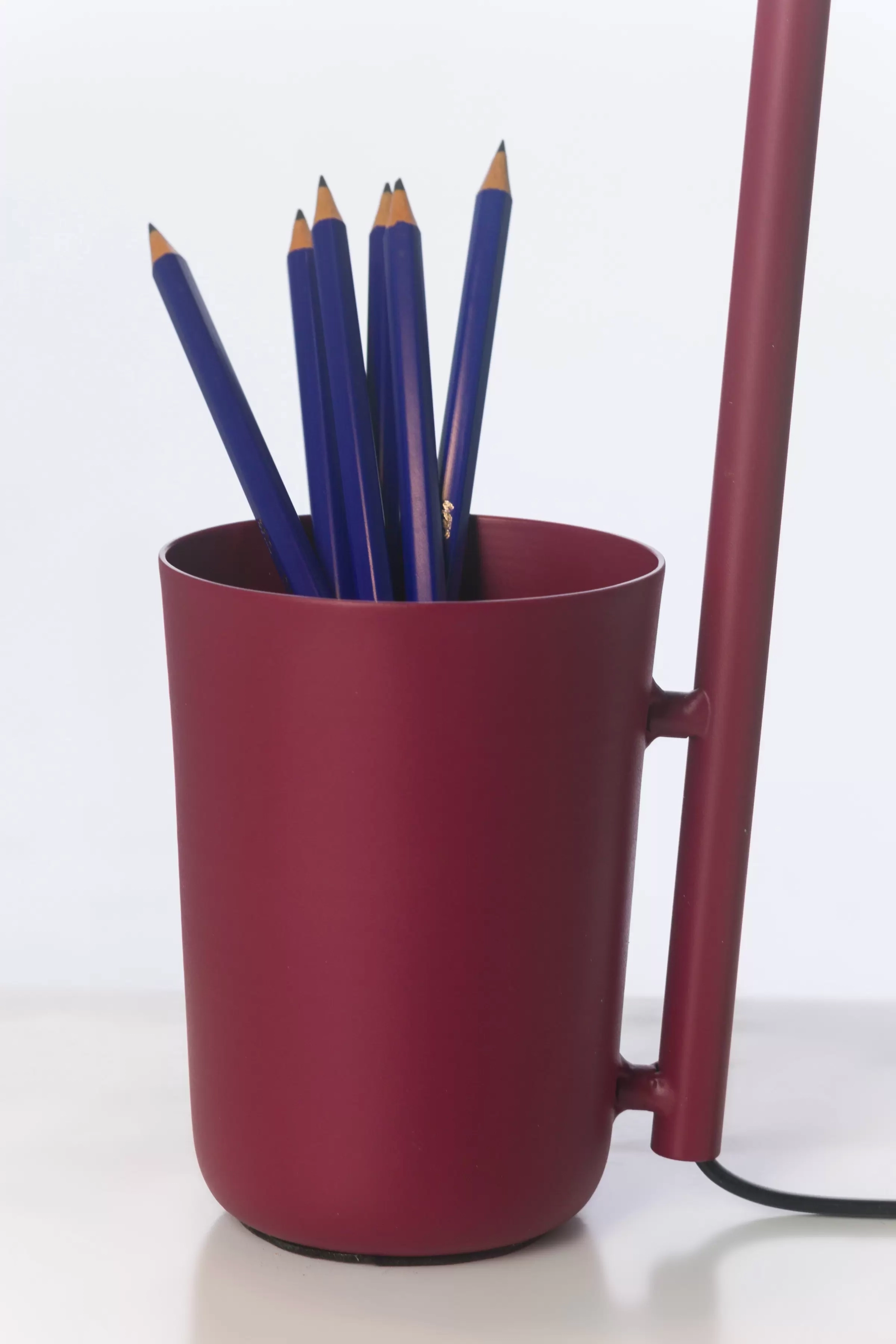 La lámpara de mesa Olivia es una lámpara de estilo moderno que incluye lapicero y está disponible en seis colores: negro, gris, blanco, verde, bordó y salmón. Su estilo la vuelve práctica y adaptable a todo tipo de ambiente.
