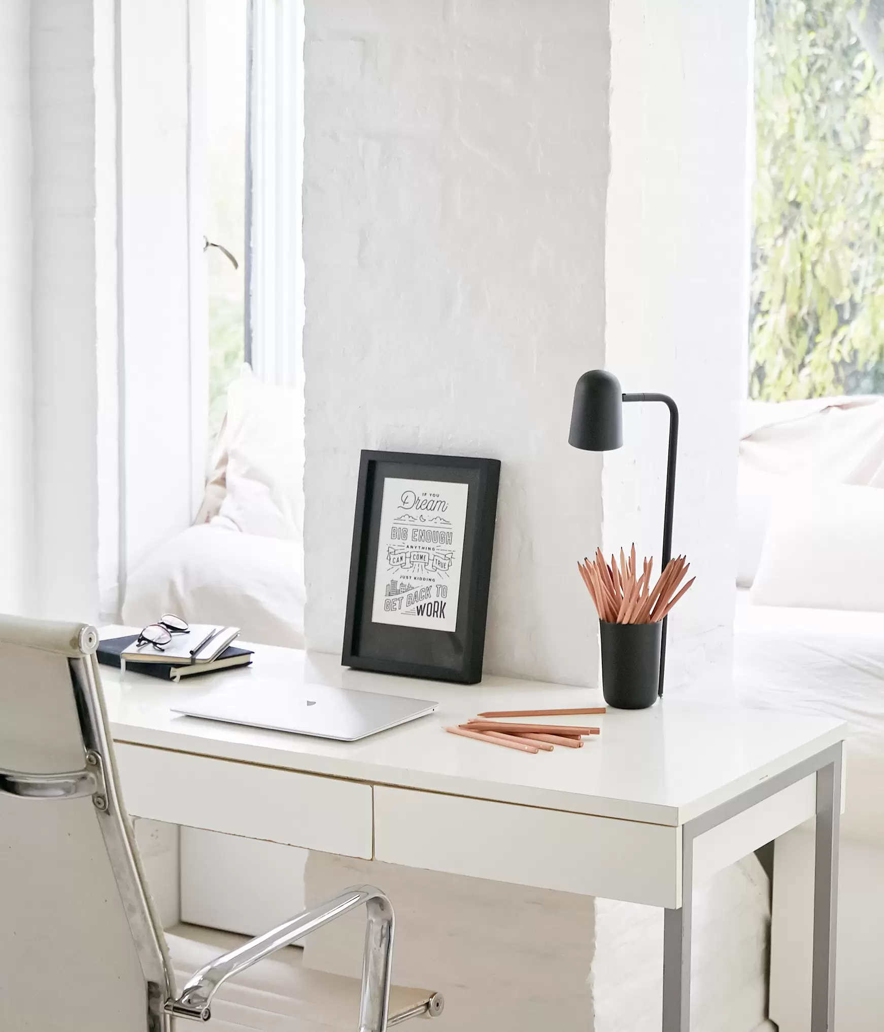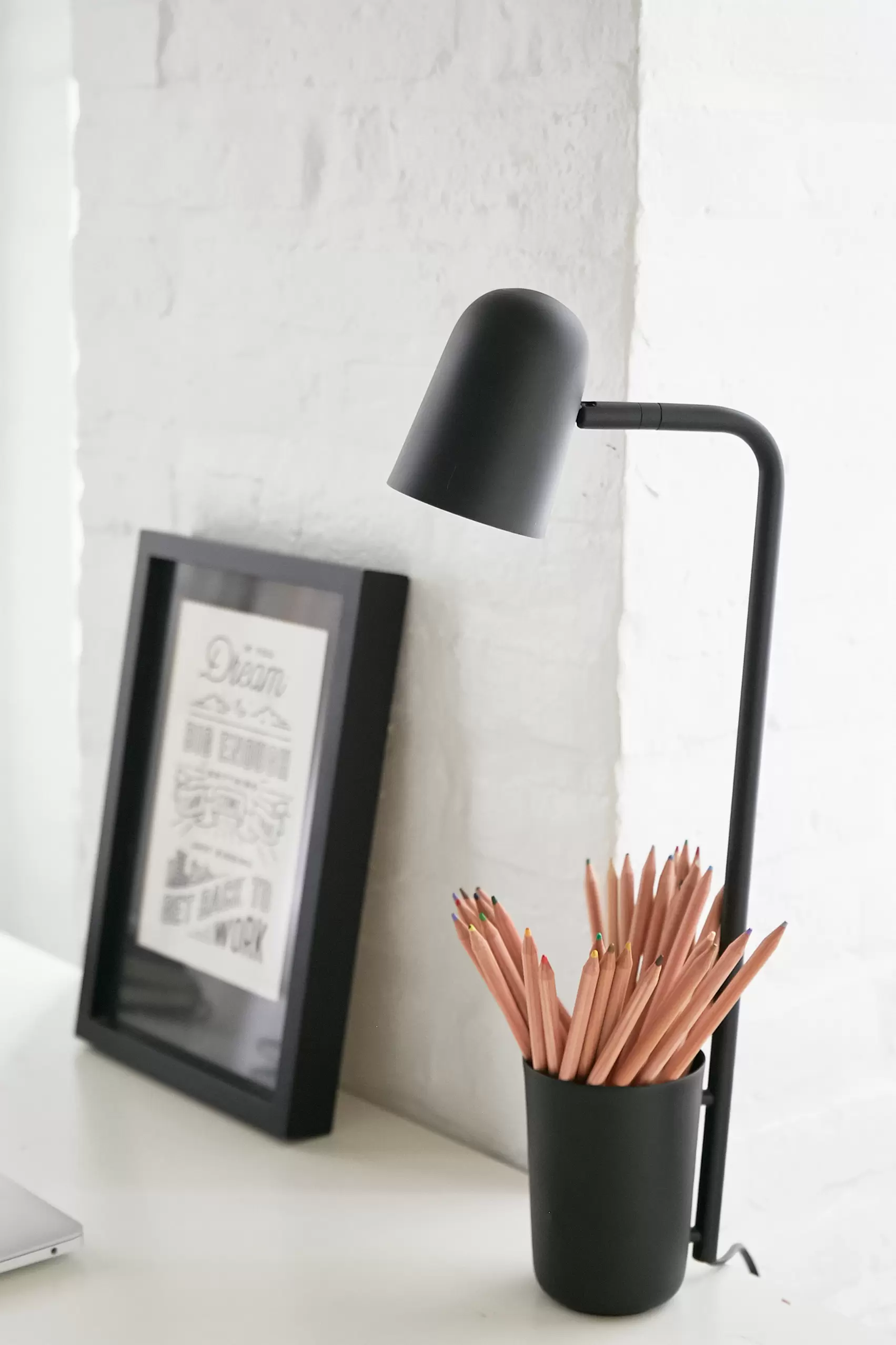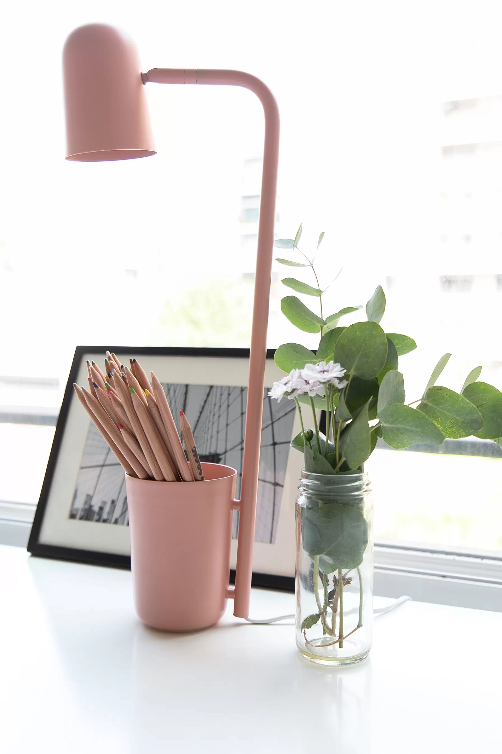 La lámpara de mesa Olivia es una lámpara de estilo moderno que incluye lapicero y está disponible en seis colores: negro, gris, blanco, verde, bordó y salmón. Su estilo la vuelve práctica y adaptable a todo tipo de ambiente.