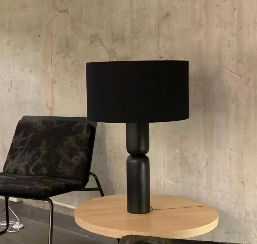 Lampara de mesa Queen esta constituida en madera torneada con terminación en hidrolaca natural y pantalla de lino.