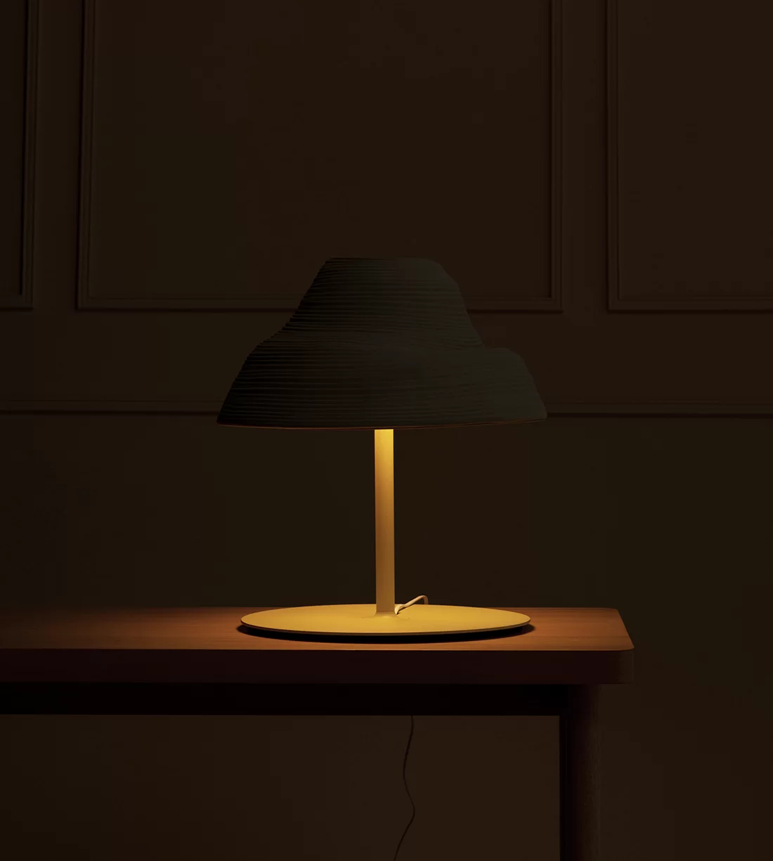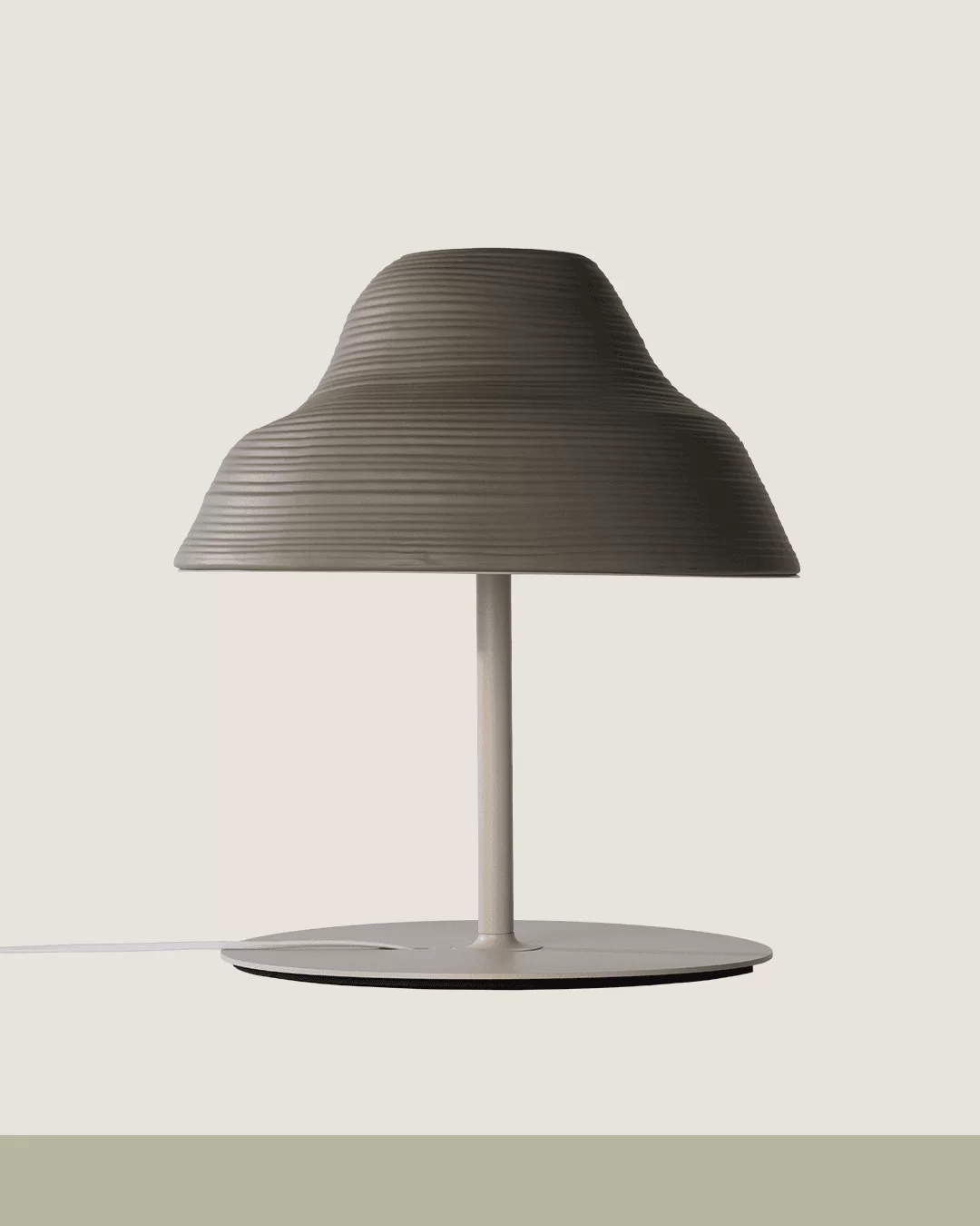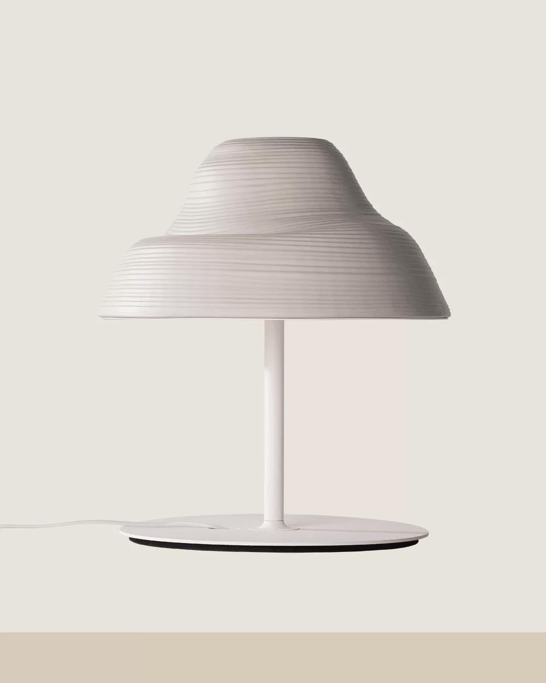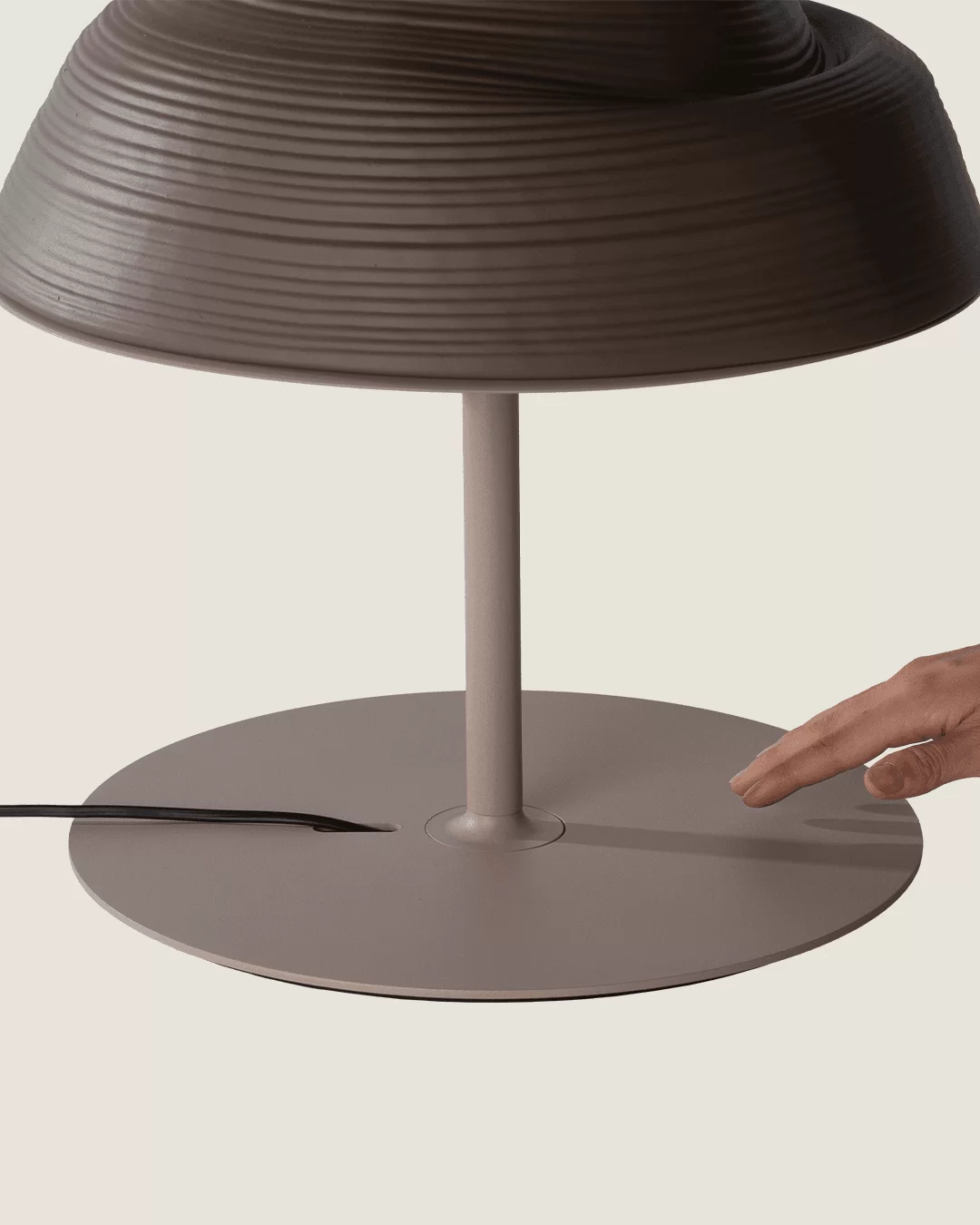 Lámpara de mesa Roll. Luminaria de diseño con cuerpo fabricado en cerámica y aluminio, con LED integrado. Difusor de metacrilato esmerilado. Cable eléctrico blanco o negro con interruptor on/off.