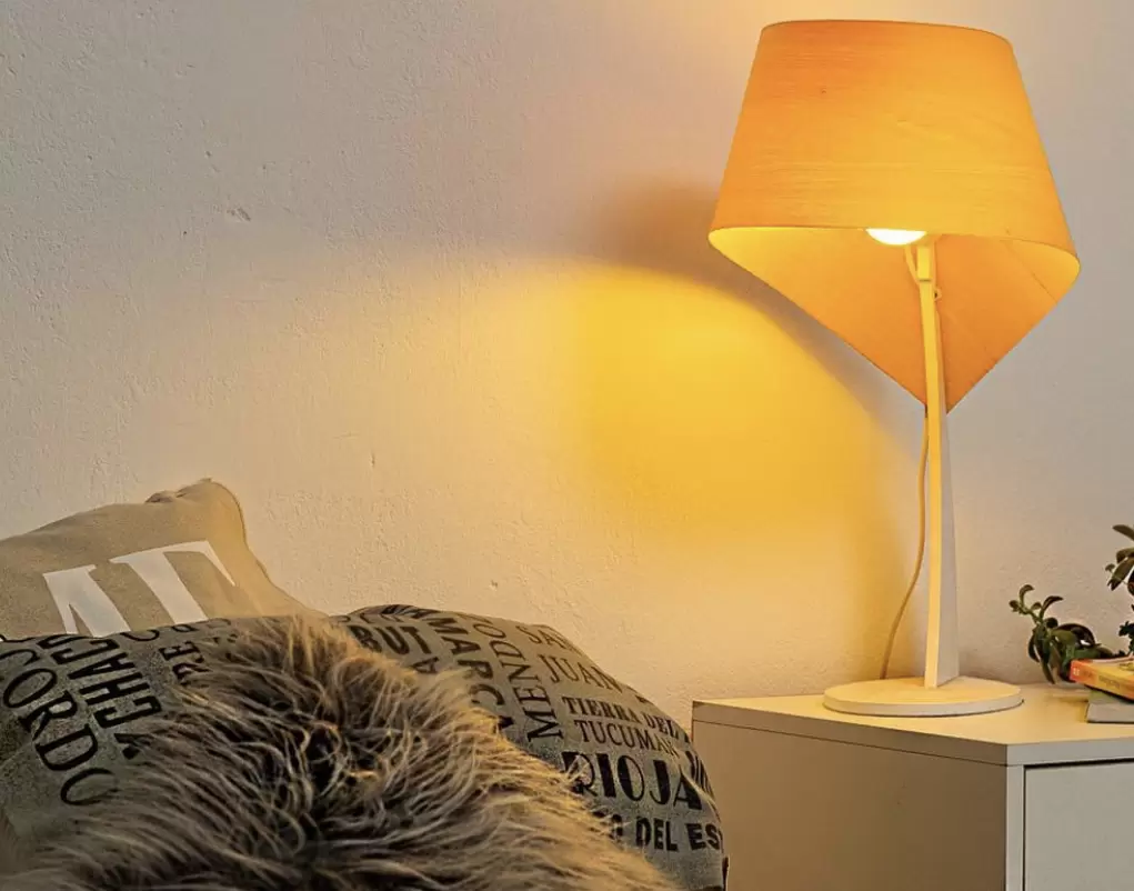 Lámpara de mesa Stiky. Un diseño minimalista inédito con una base en acabado blanco. Está lámpara es un modelo de mesa que recuerda al diseño Krabbe.
