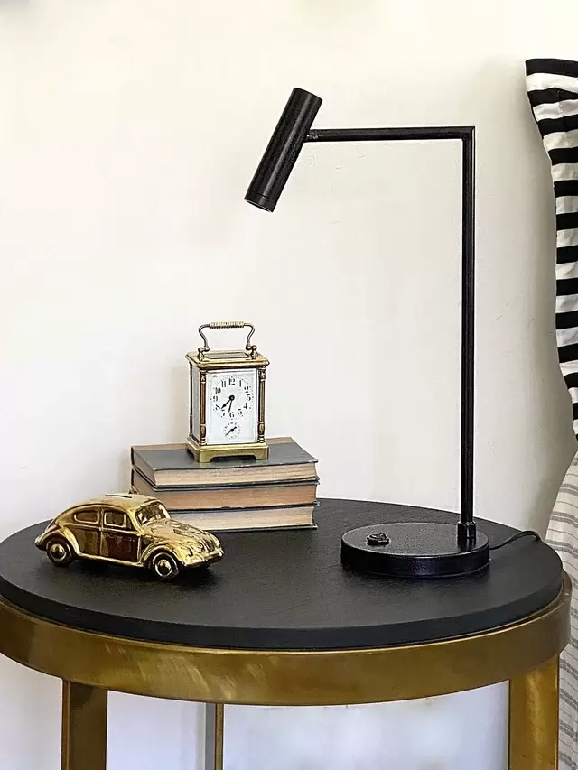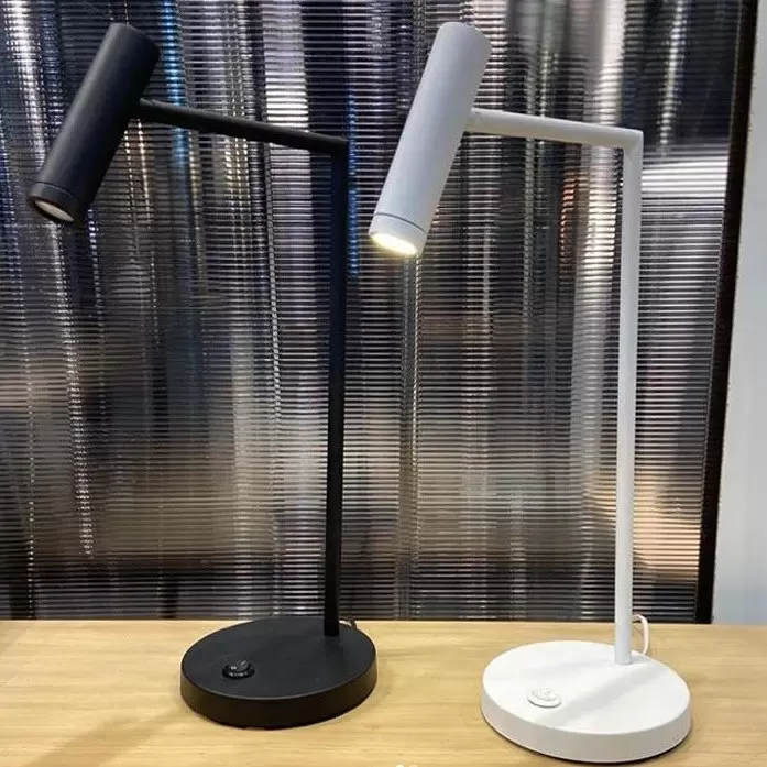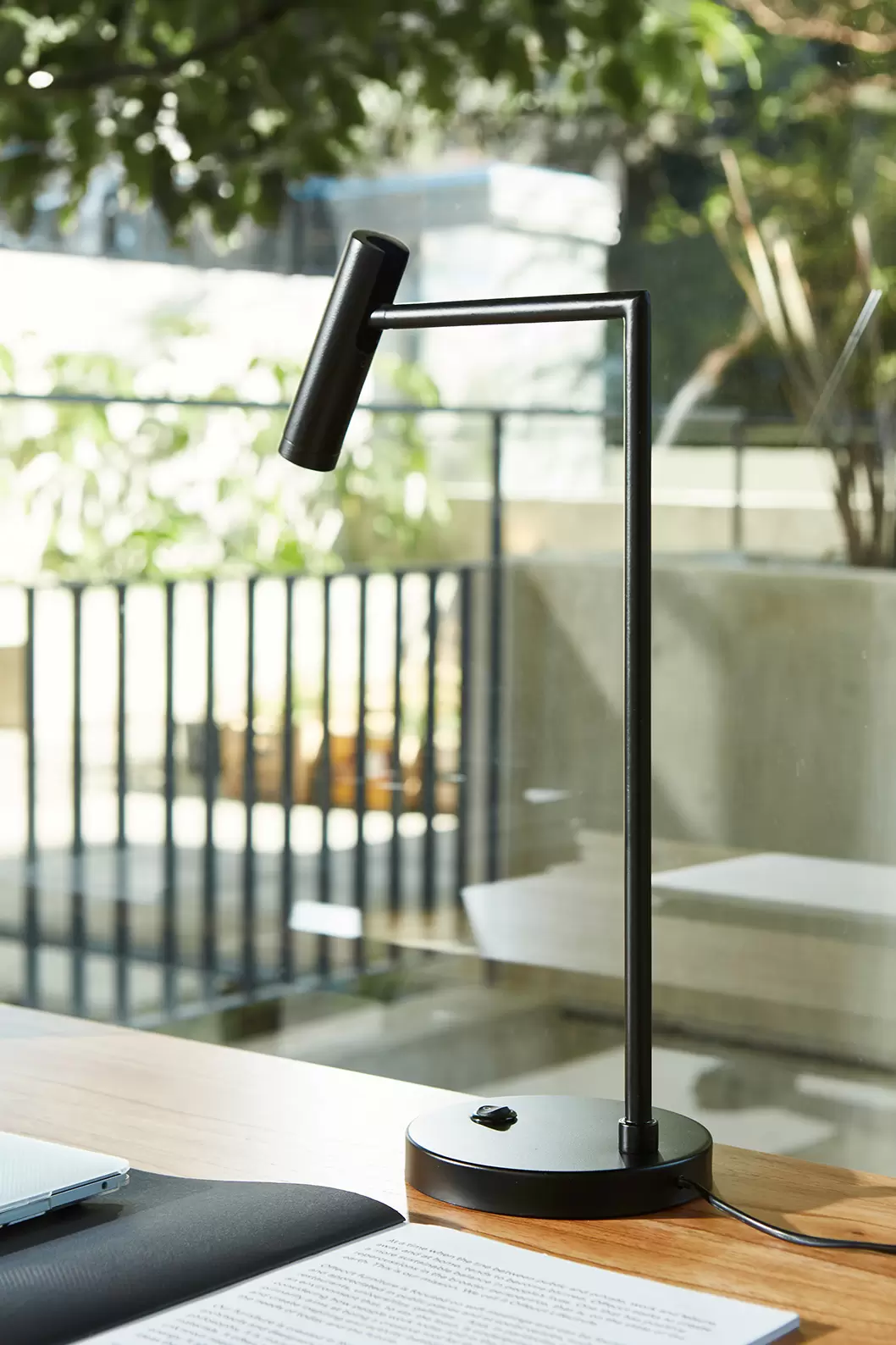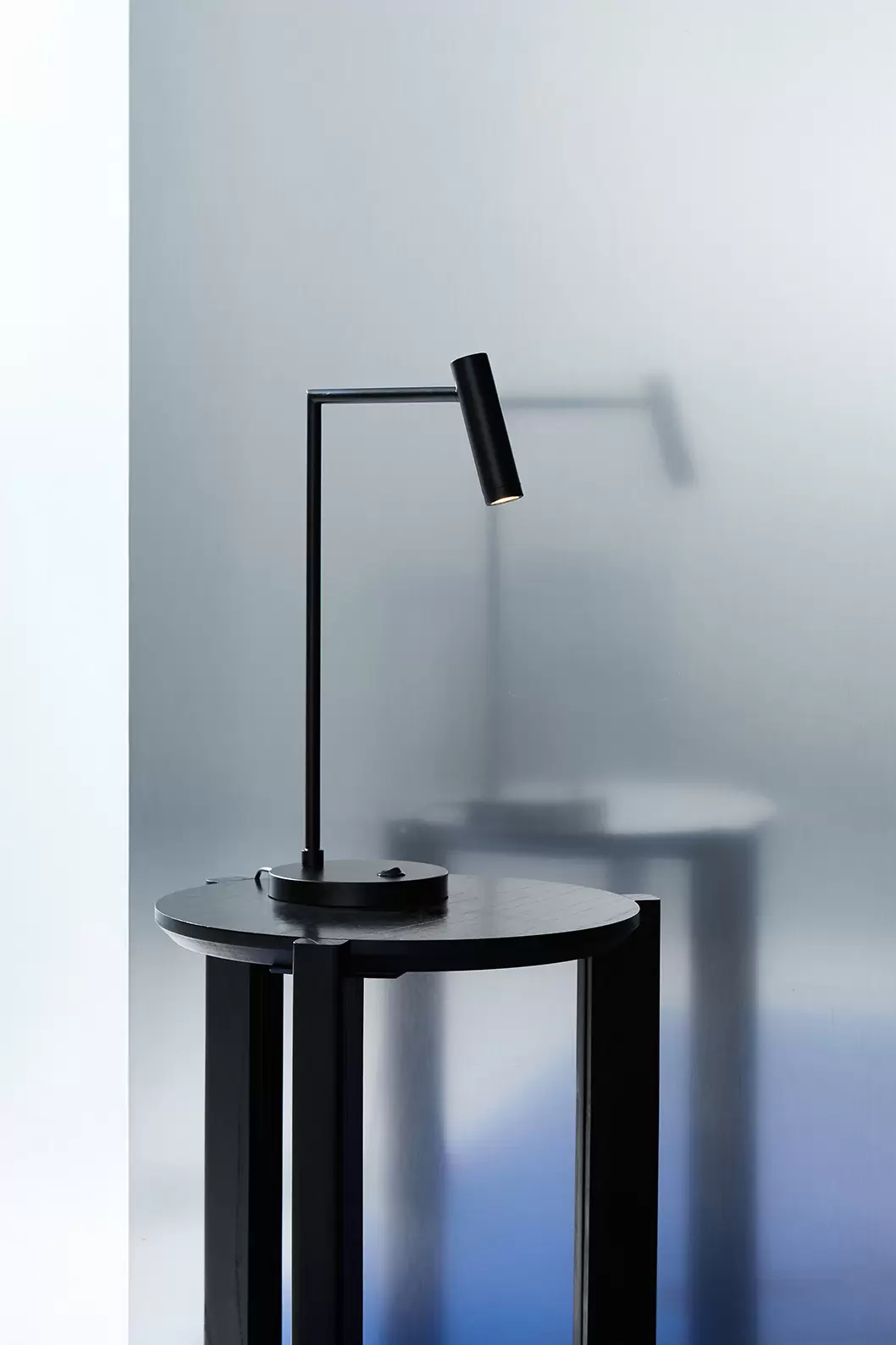 Lámpara de mesa Suite es una luminaria de 40cm de alto disponible en color blanco o negro con LED integrado color cálido.