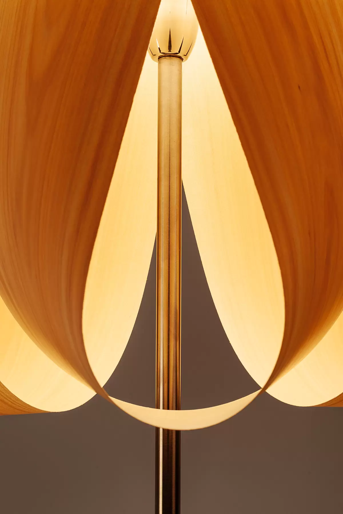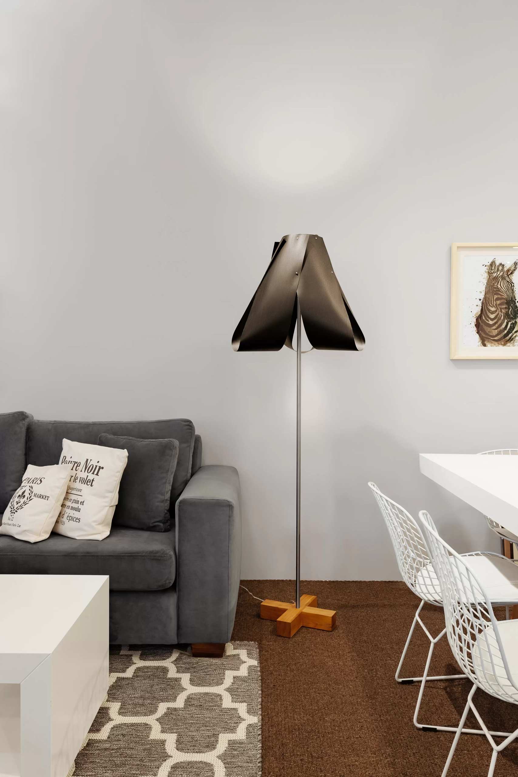 Lámpara de pie Anker Fub. Combinación perfecta de la clásica pantalla Anker Klein con un original pie de madera maciza diseñado en forma de cruz.