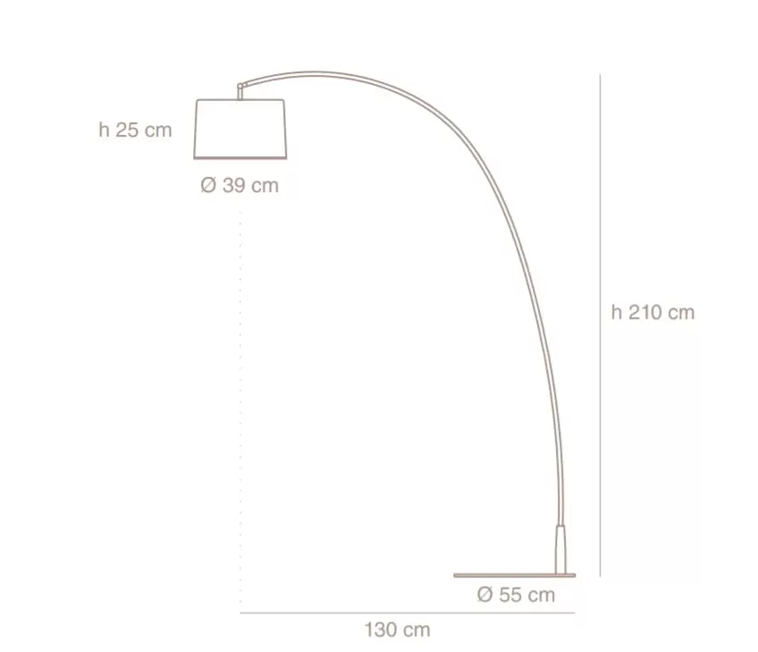 Lámpara de pie Arco esta construida en aluminio y tiene 2,1m de altura. Está disponible en blanco o en negro. Para un foco LED MAX 60w. Ideal para todo tipo de espacio.