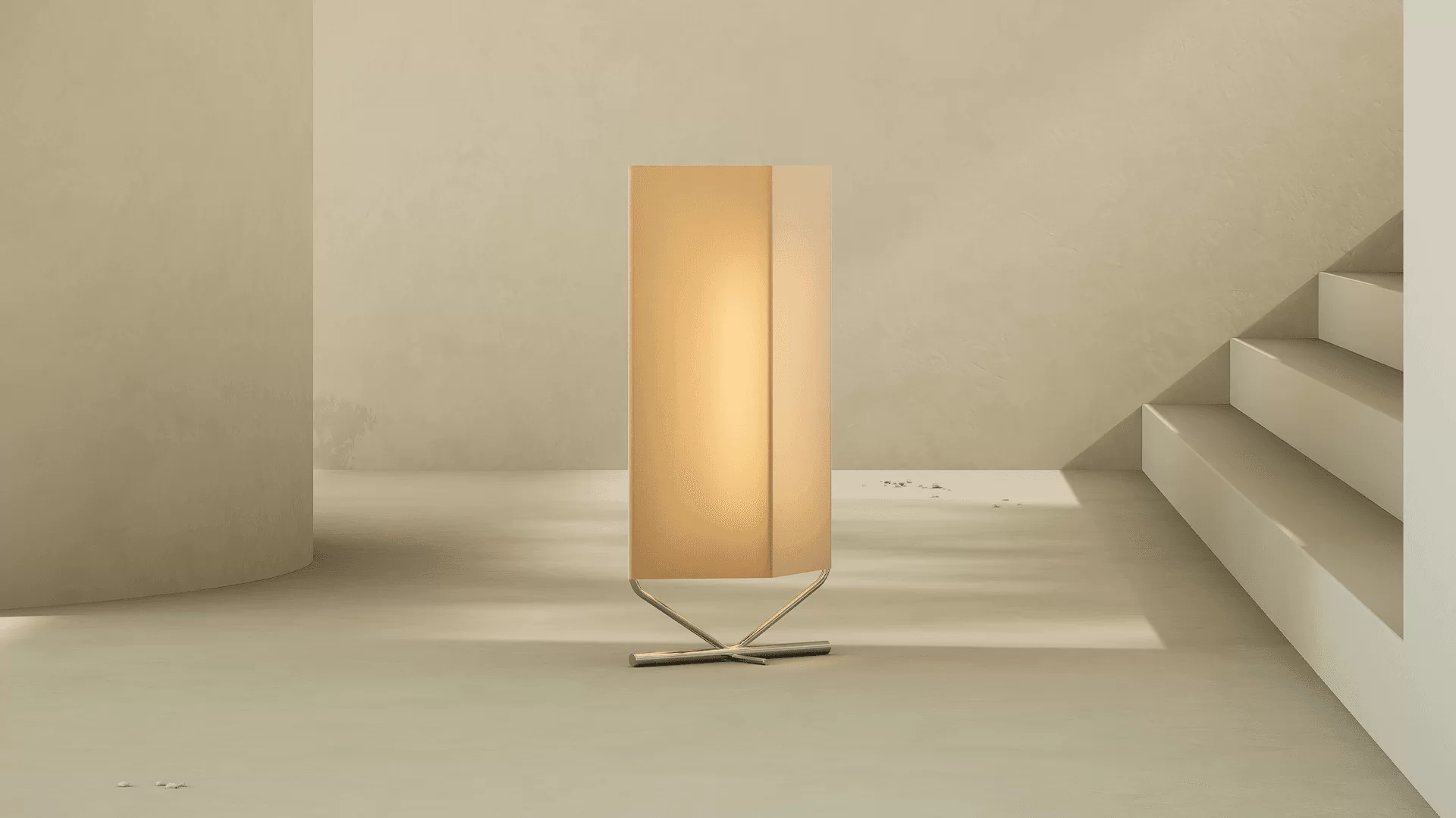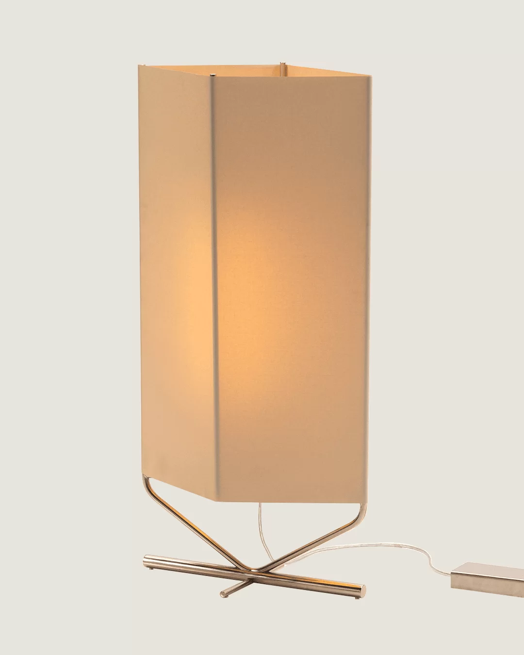 En su interior se encuentra un sistema de iluminación suspendido por tensores niquelada encargada de tensar una pantalla textil.