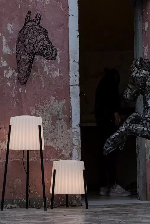 Lampara de Pie Barcino luminaria fabricada en aluminio de alta calidad y regulable, que permite ponerla en diferentes alturas. Ideal para exteriores.