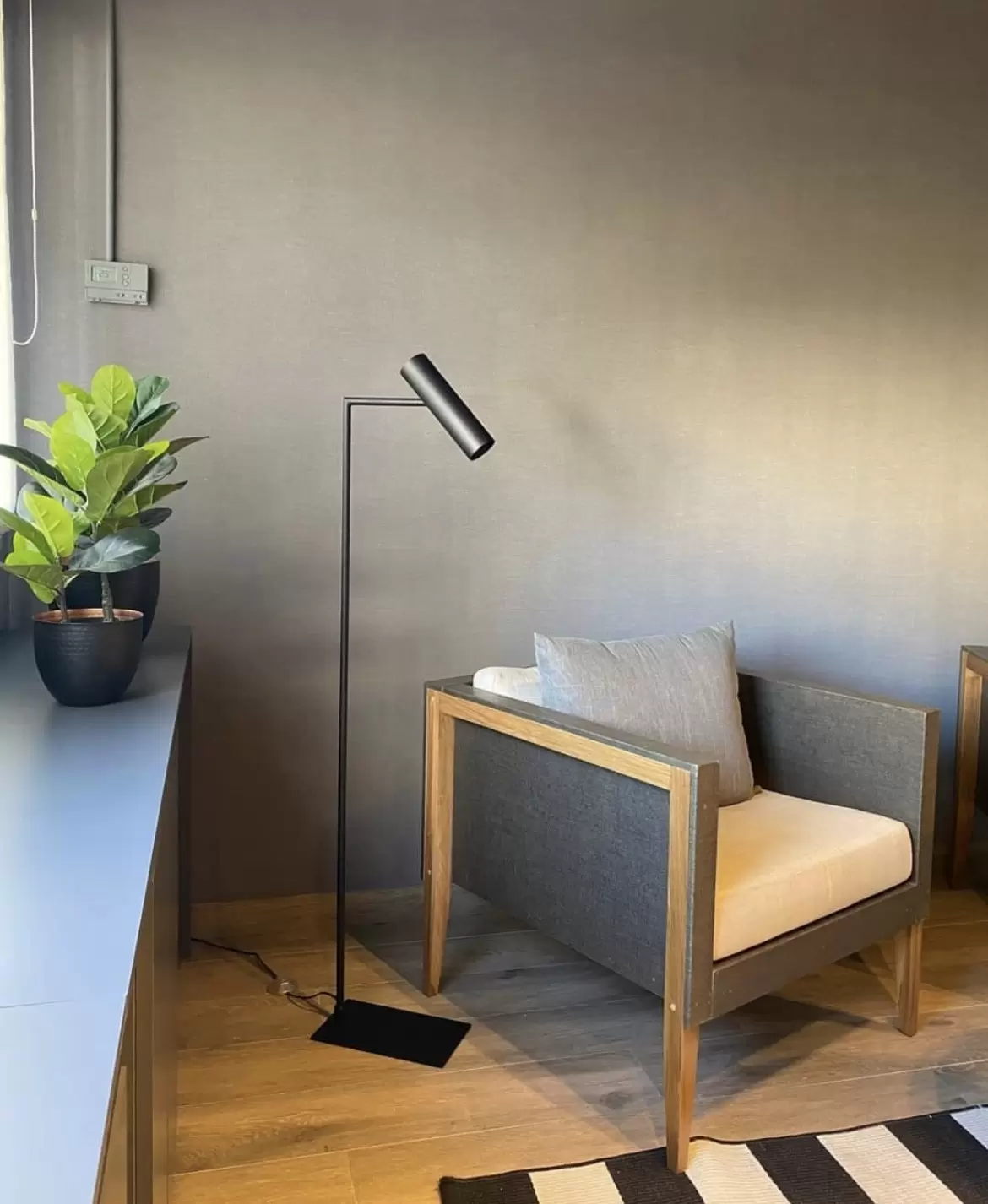 Lampara de pie Canon es una luminaria de 140cm de alto disponible en color blanco o negro para un foco gu10.