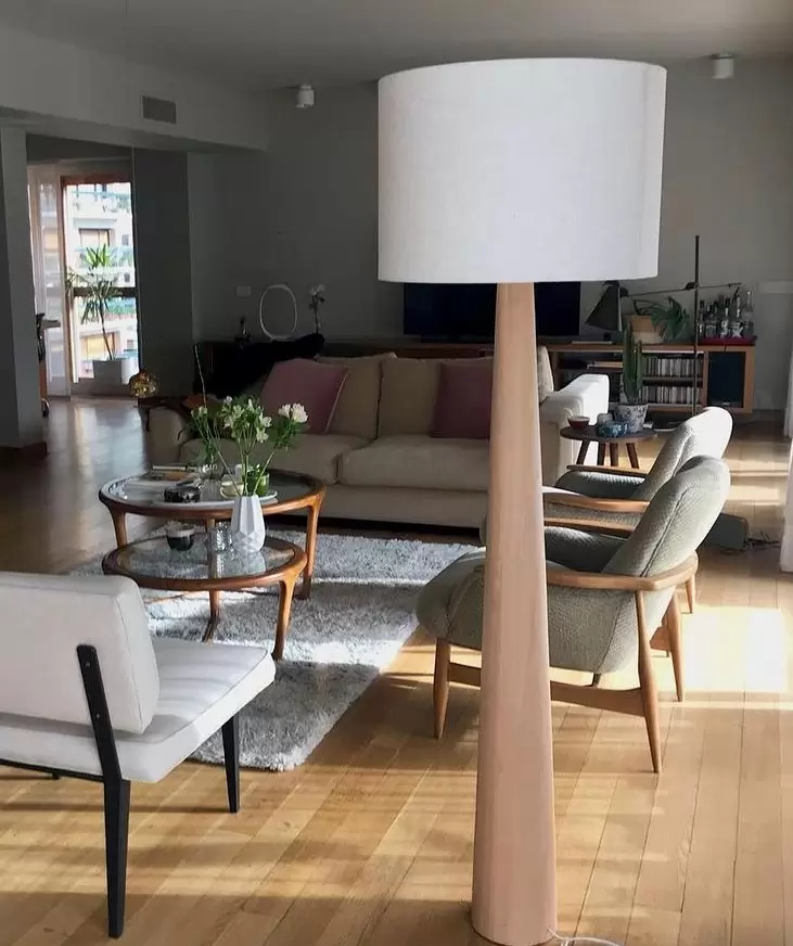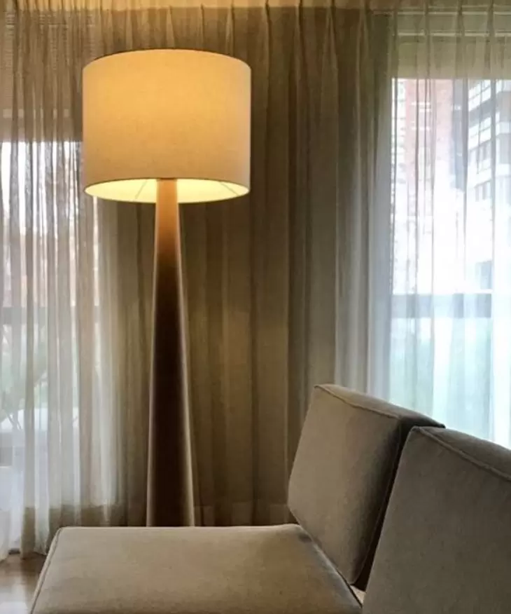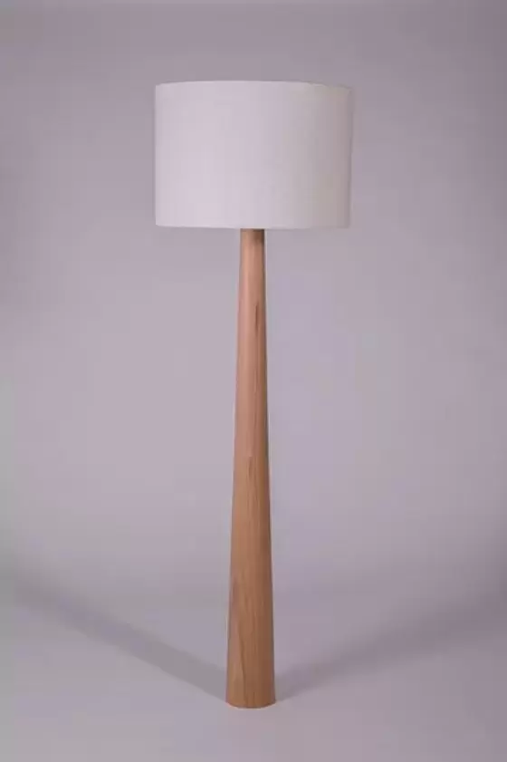 Lampara de pie Cono Bill esta construida en madera maciza de lenga torneada con terminación en tinta negra o hidrolaca natural.