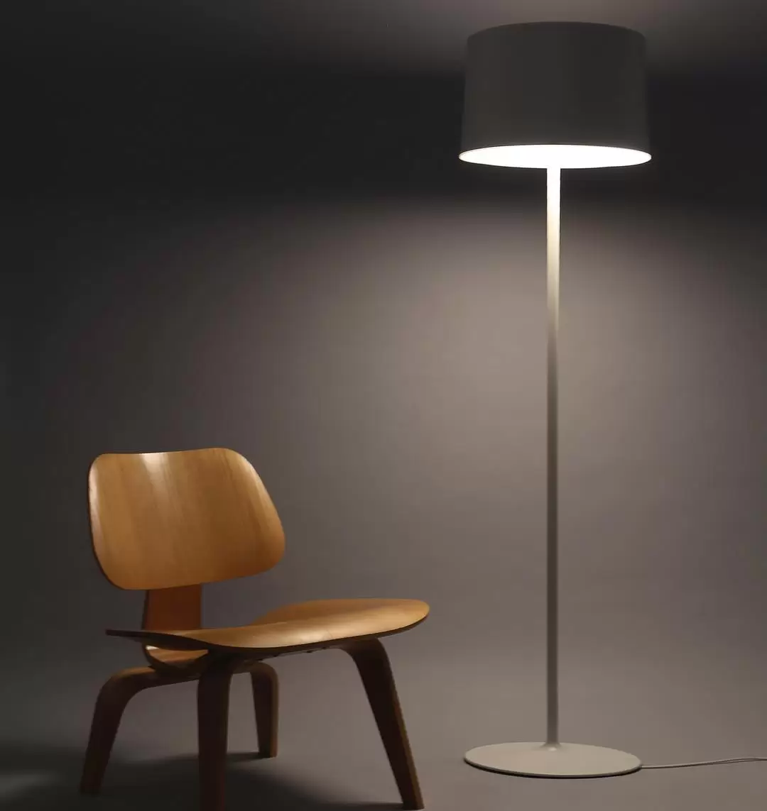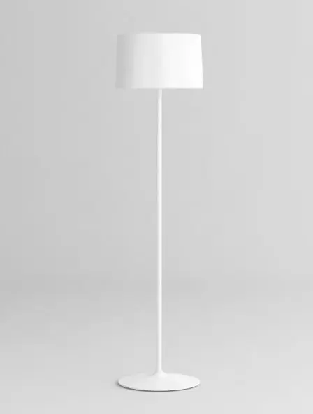 Lámpara de pie Hihat chica de pie esta realizada en aluminio tanto su base, soporte y pantalla que alberga tres lámparas LED. Ideal para ambientar livings o espacios modernos de interior.