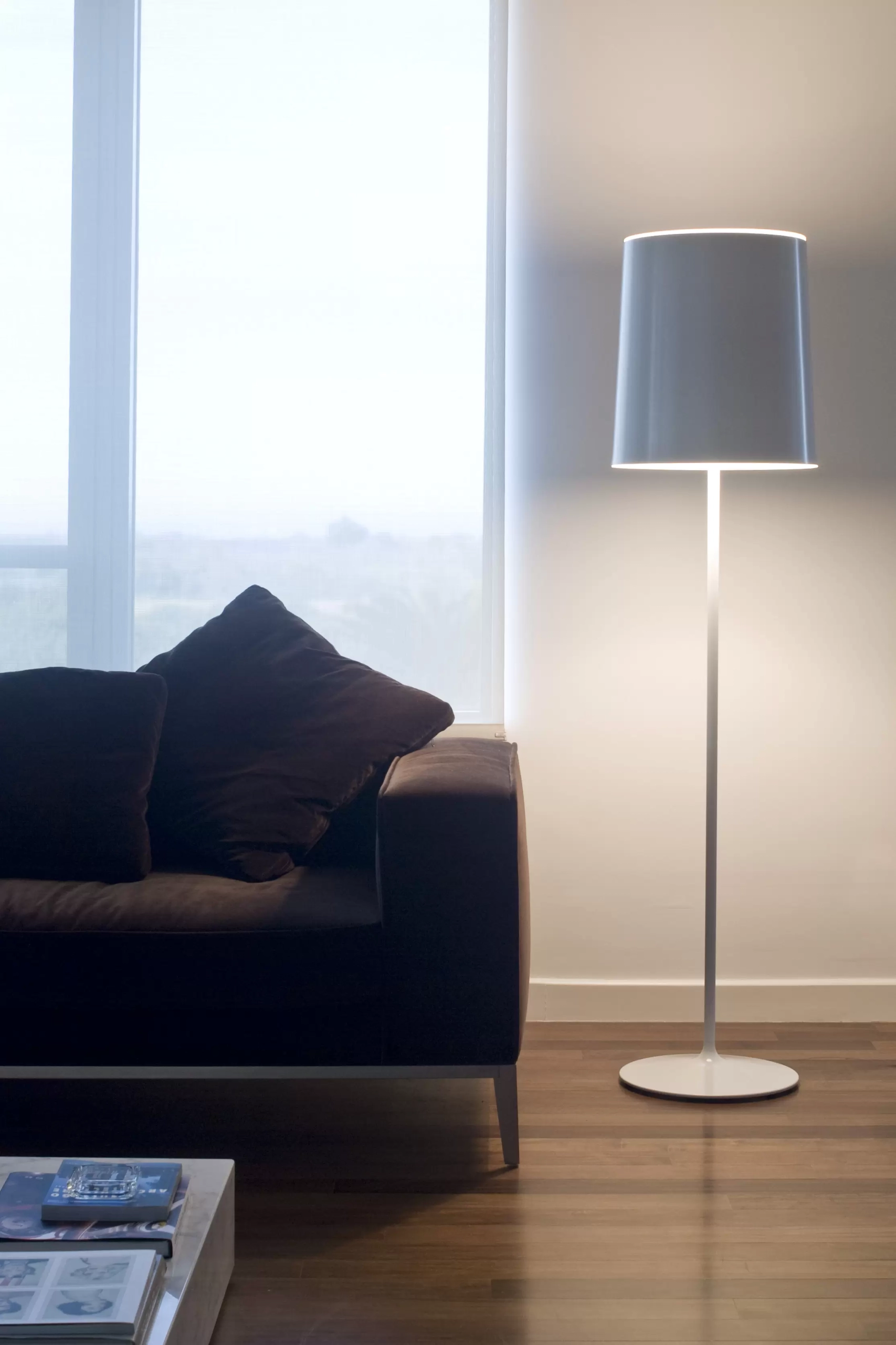 Lámpara de pie Hihat Grande de pie esta realizada en aluminio en su totalidad. Ideal para alumbrar esquineros olvidados en tus espacios preferidos.