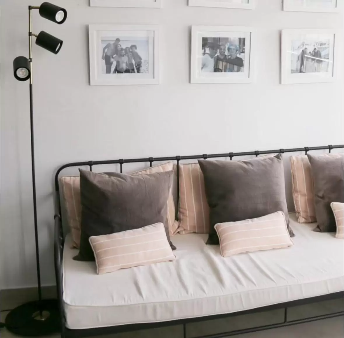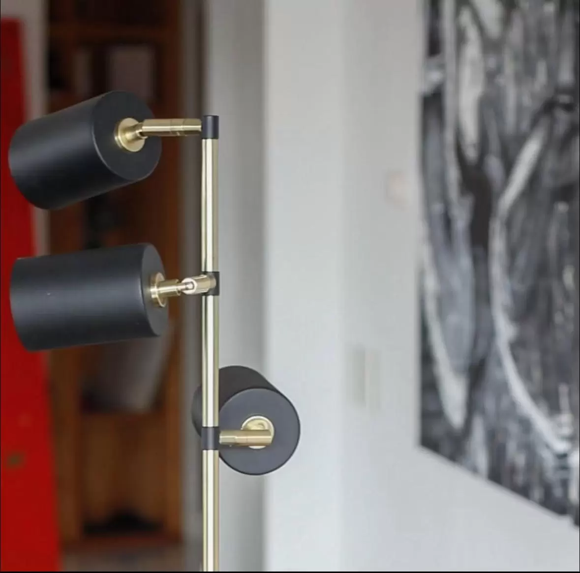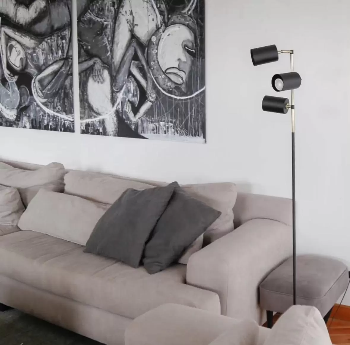 Lampara de Pie Jesana es una lámpara de piso fabricada en hierro galvanizado y pintado al horno con 3 luces. Apto para focos GU10.