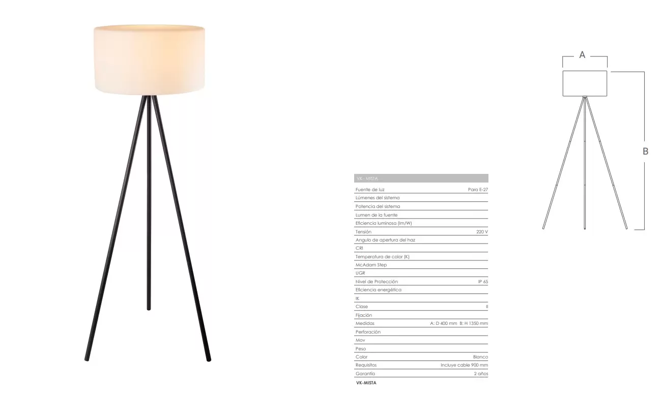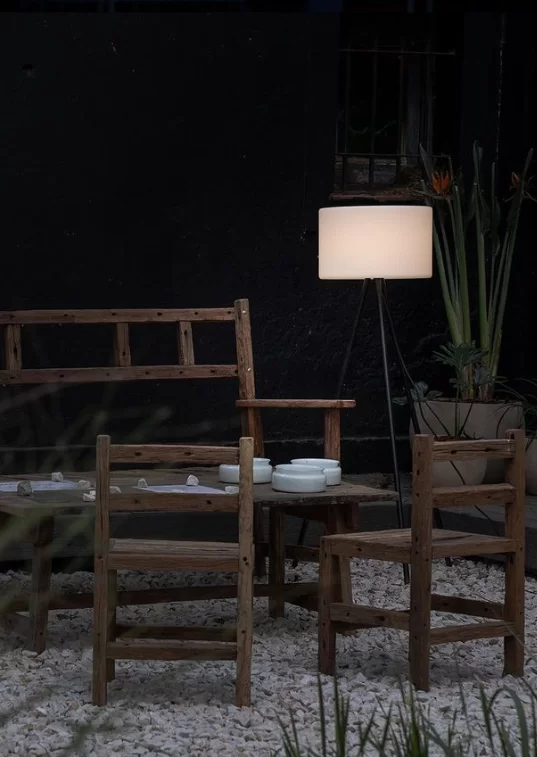 Lámpara de pie Mista es una luminaria de estilo trípode apta intemperie con grado de protección IP65.