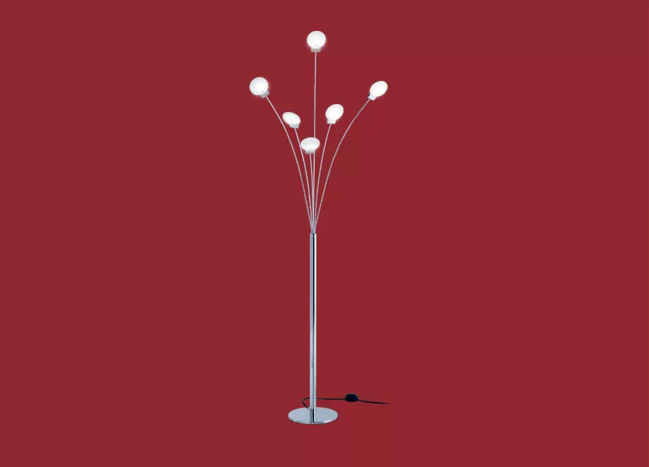 Lámpara de Pie Misterio II, de 170cm de alto, seis luces LED de estilo moderno, disponible en color cromo. Adaptable a todo tipo de ambiente.