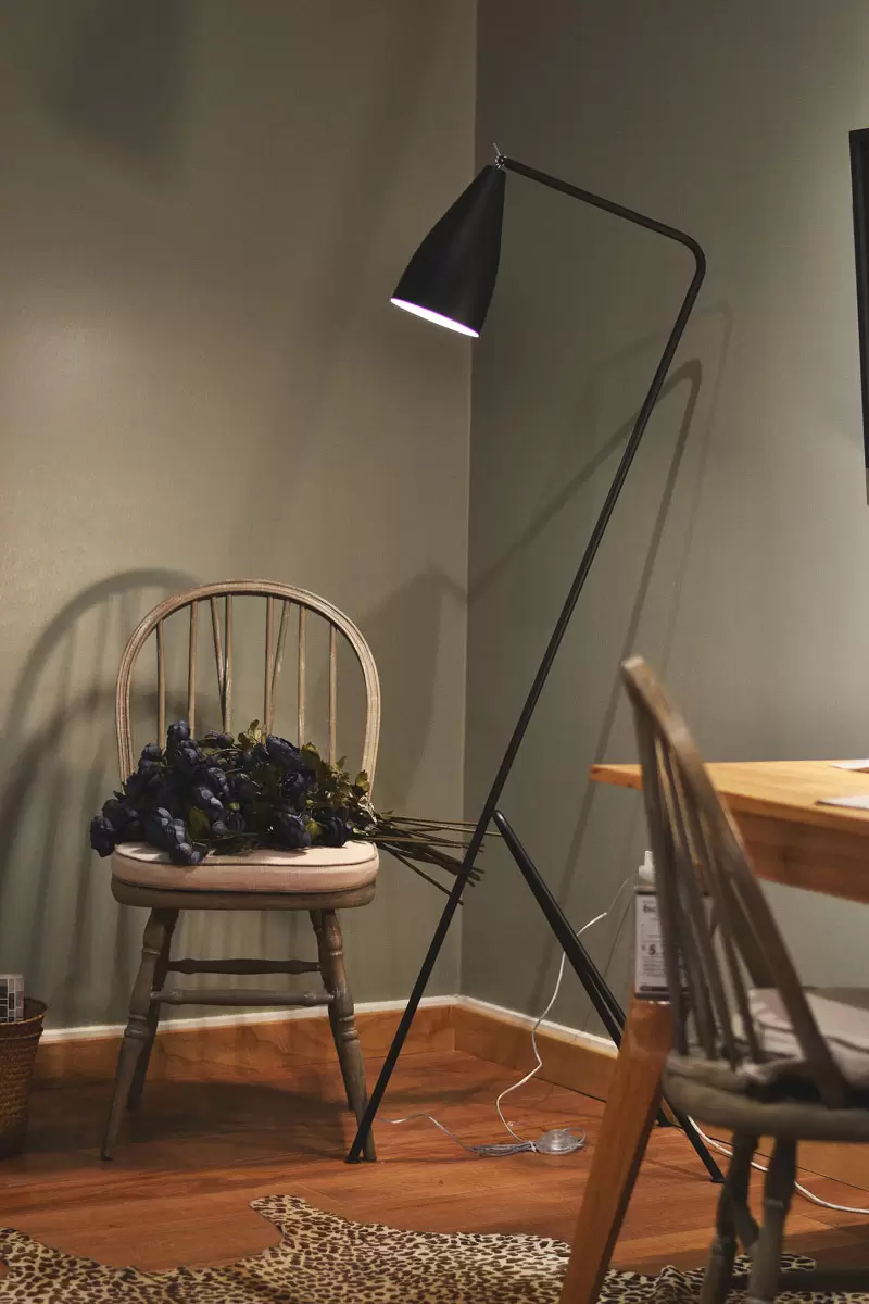 Lampara de pie Olivia es un luminaria de 160cm de alto disponible en color blanco, negro o en amarillo ideal para un rincón de un living.