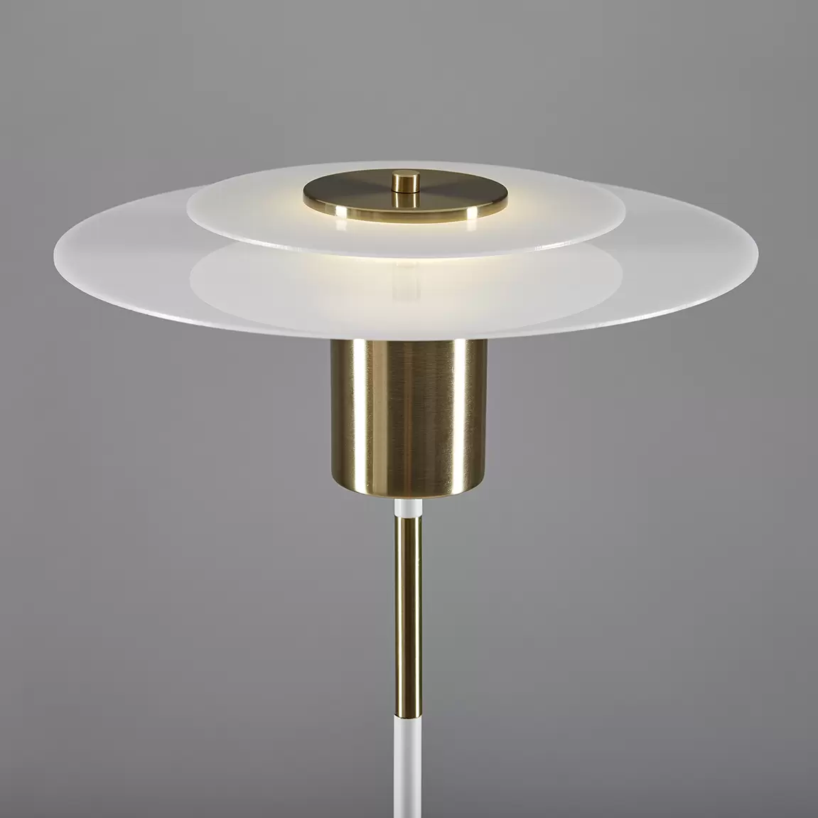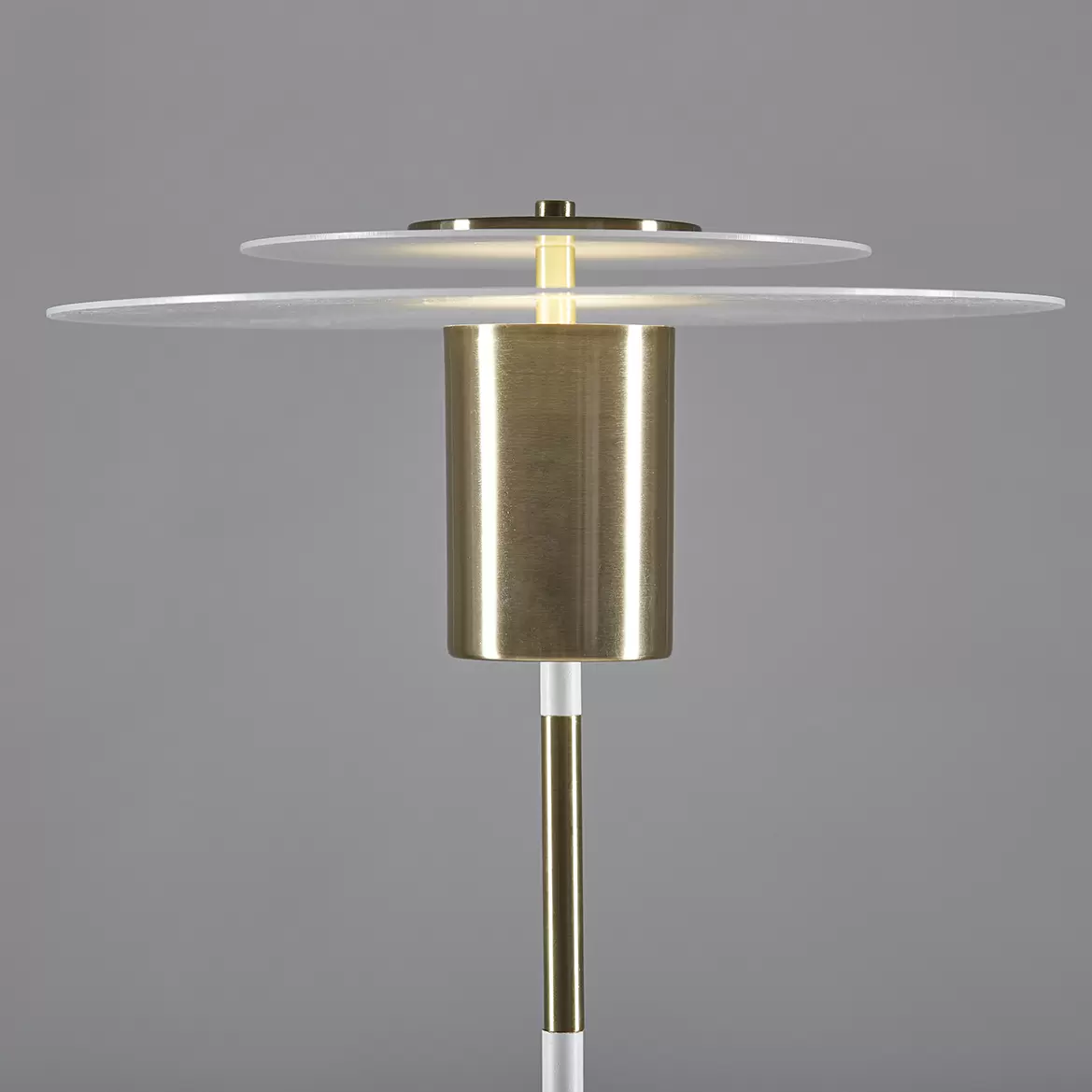 Lámpara de pie Orbit Lungo. Luminaria de techo fabricada en acrílico y hierro, de estilo moderno, con LED integrado y disponible en dos colores: bronce y plátil.