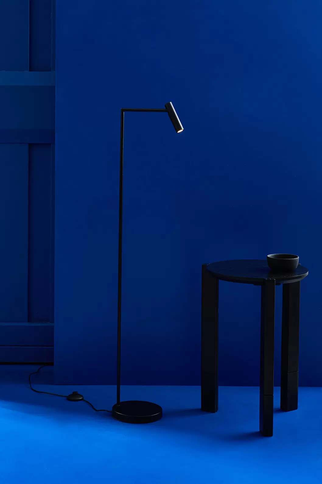 Lampara de Pie Suite. Luminaria de estilo minimalista, fabricada en hierro, con placa LED de alta calidad y cable inyectado e interruptor ON/OFF.