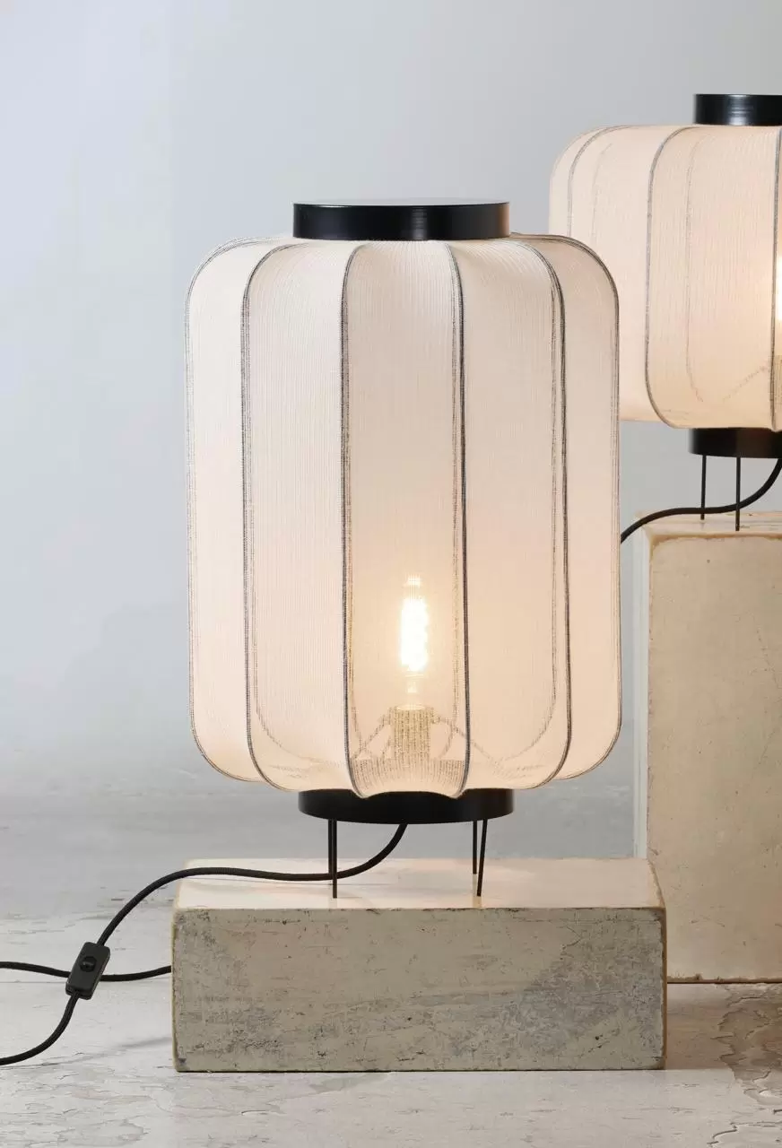 Lampara Mesa Capsula es una lámpara de escritorio fabricada en metal, pintada al horno en negro mate, revestidas en tela de algodón color natural.