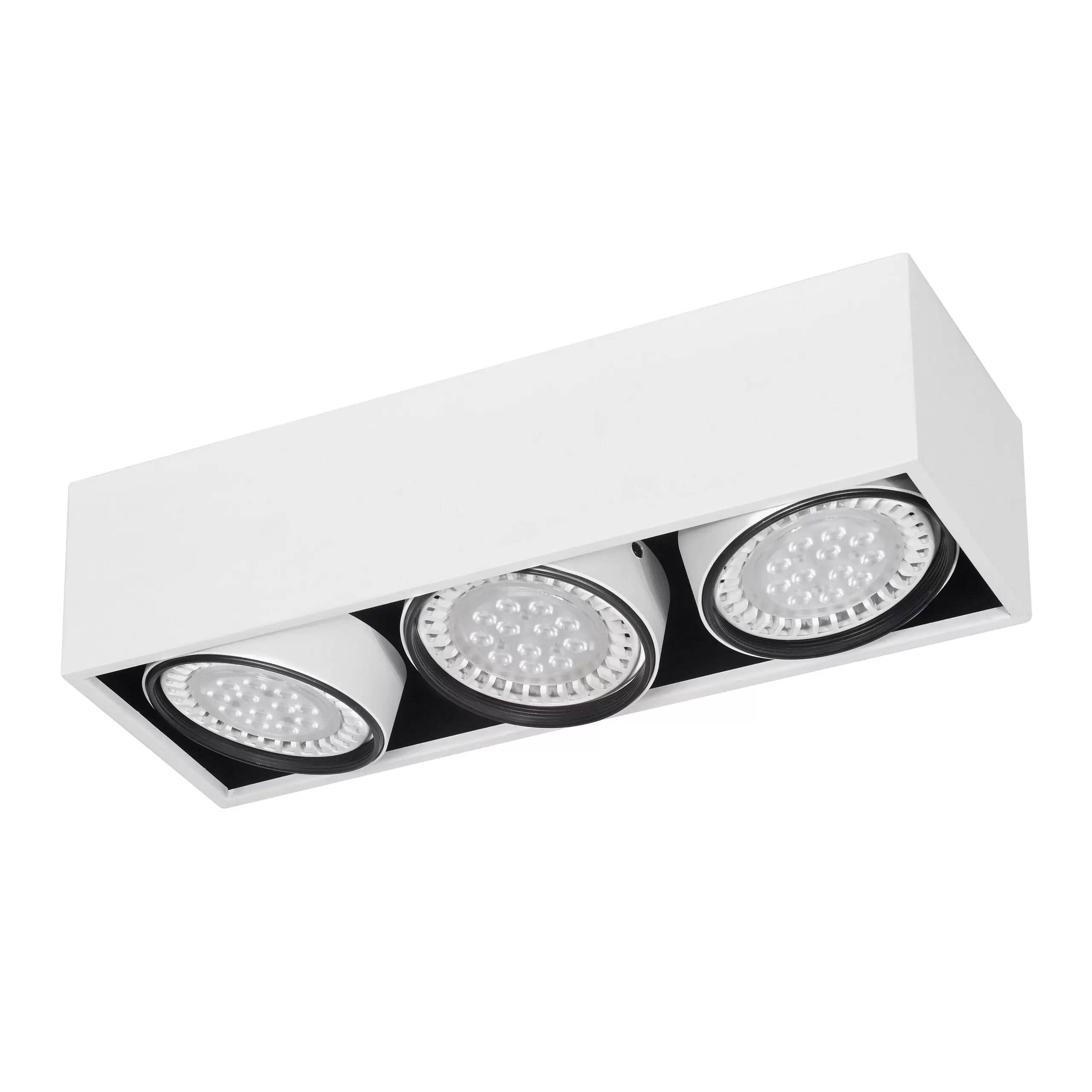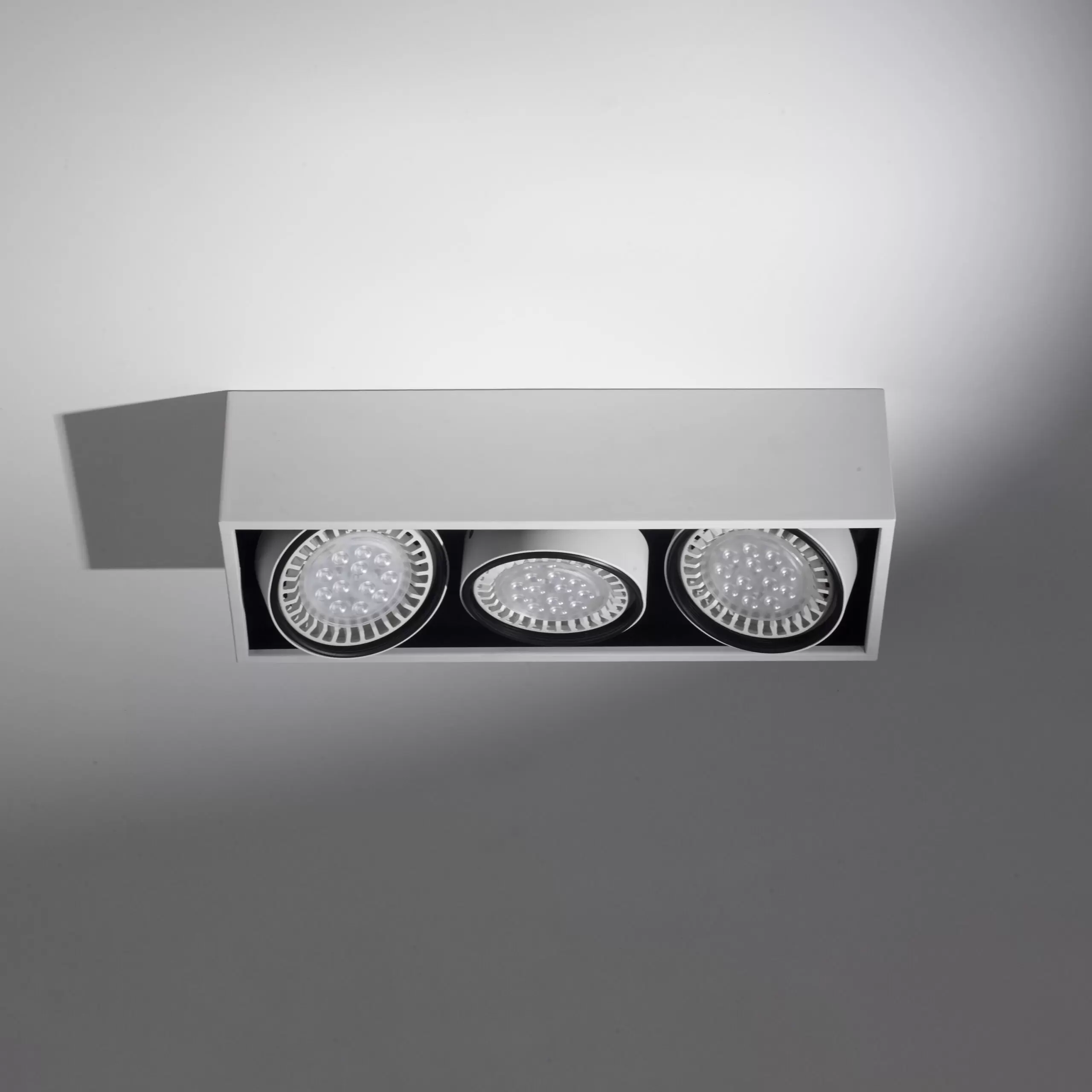 Plafón Berdy 3. Luminaria fabricada en metal, de tres luces, estilo moderno, con movimiento cardánico y disponible en dos colores: blanco o negro.