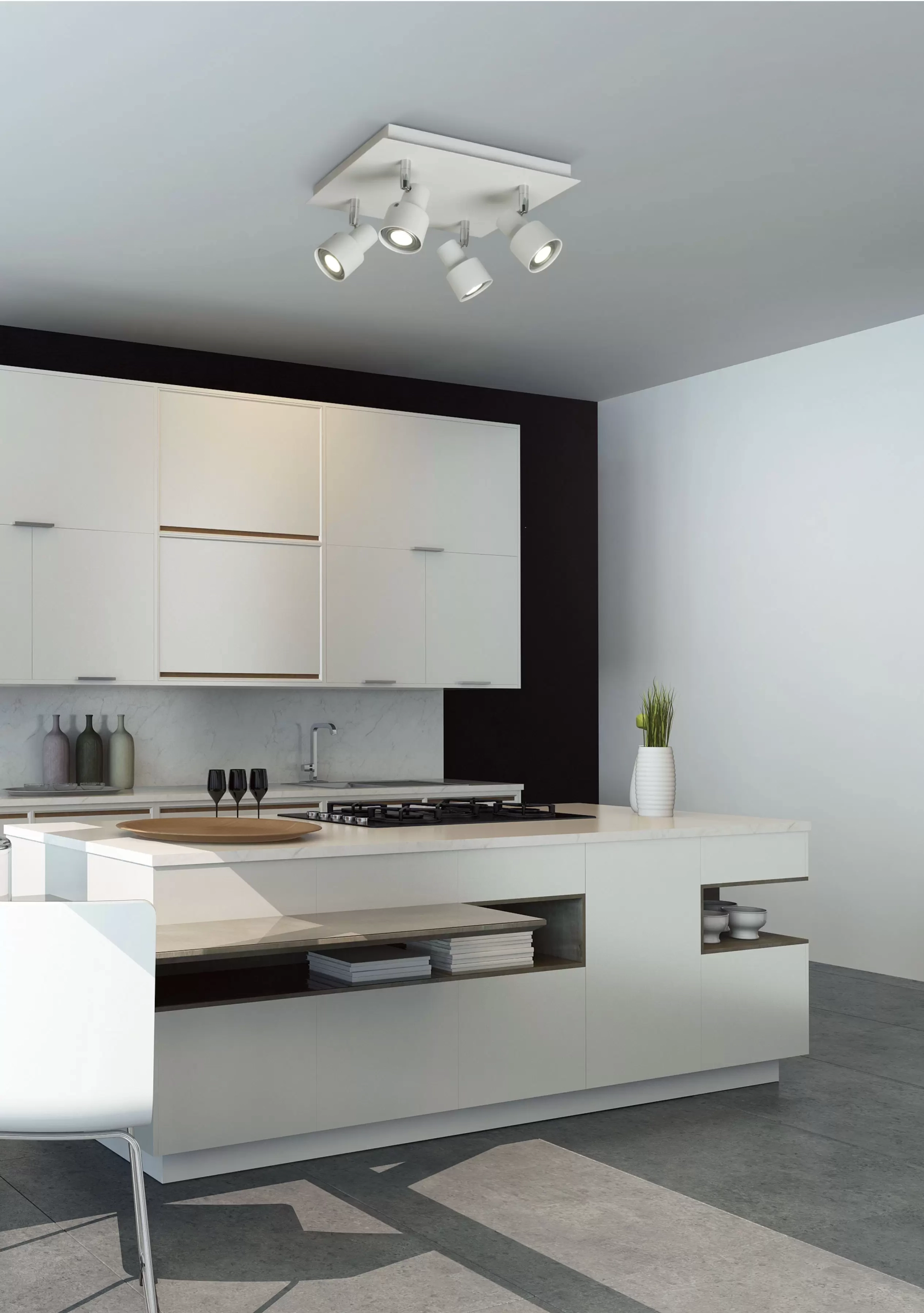 - Portalámpara: Para cuatro focos LED GU10