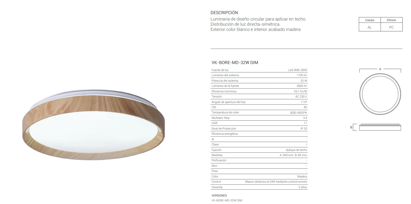 - Portalámpara: LED cálido integrado 3000K-6500K